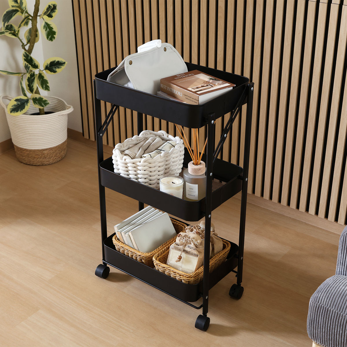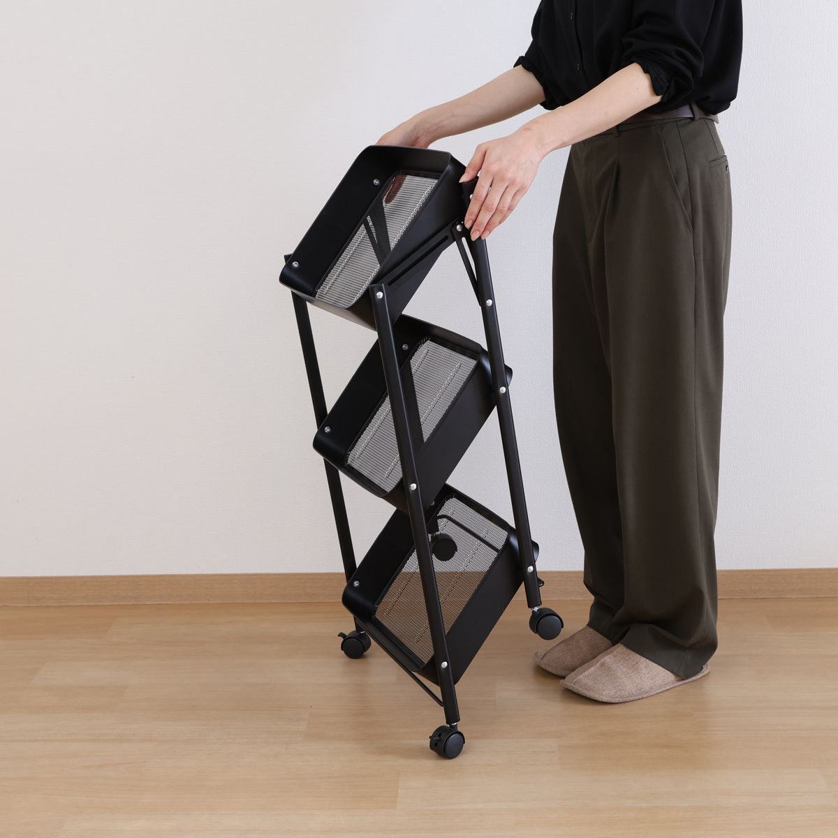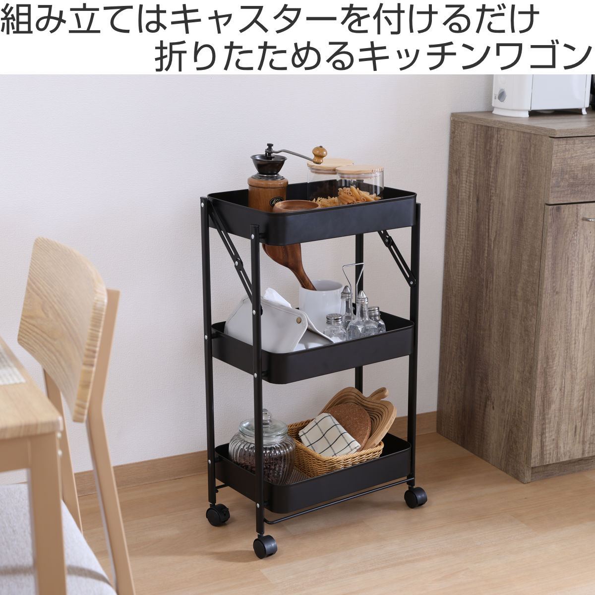 シンプルなデザインで使いやすいキッチンワゴンです。3段のバスケットには調味料からカトラリーまで様々なものを収納でき、キッチンまわりをすっきり整理できます。インテリアやお部屋の雰囲気に合わせて選べる3色展開です。