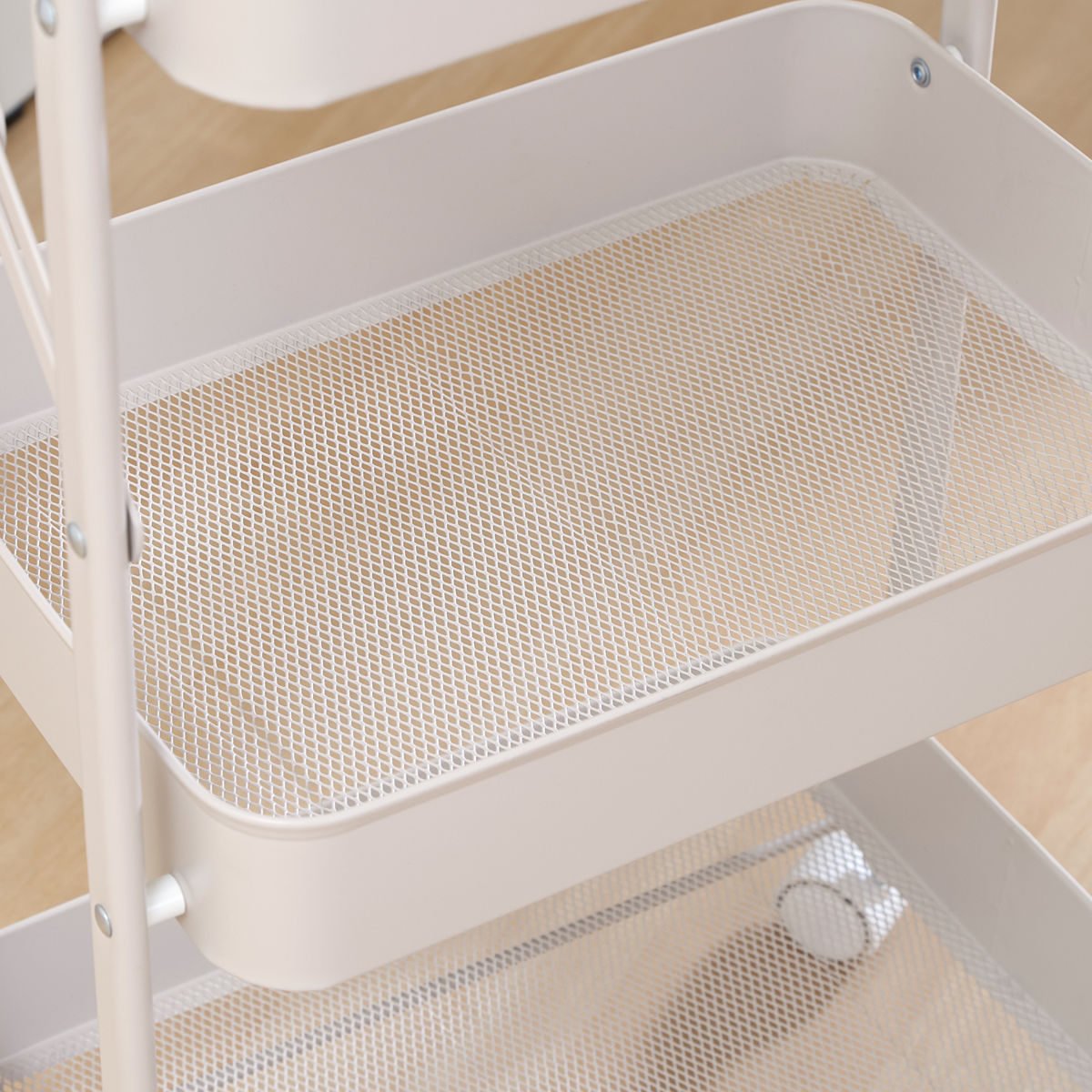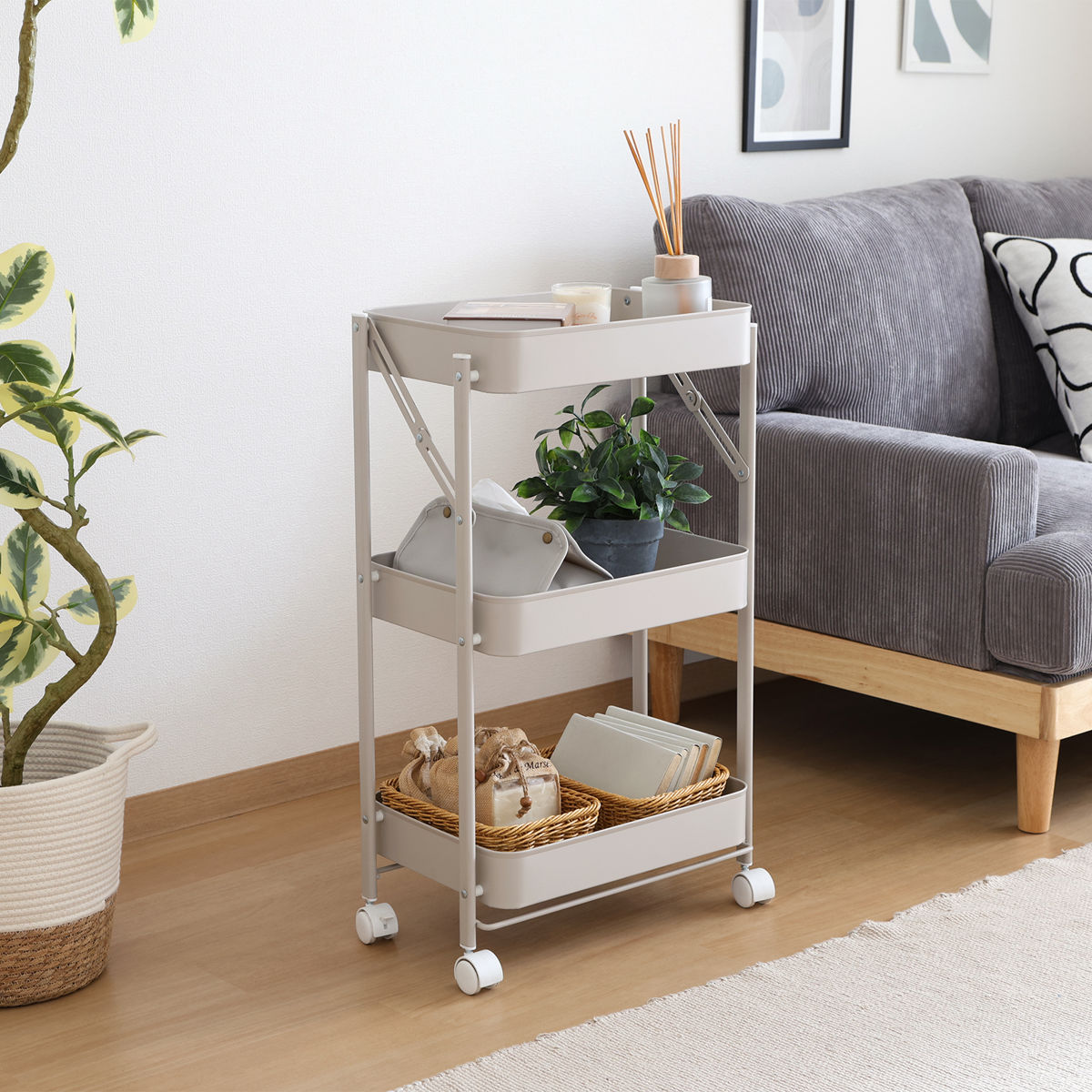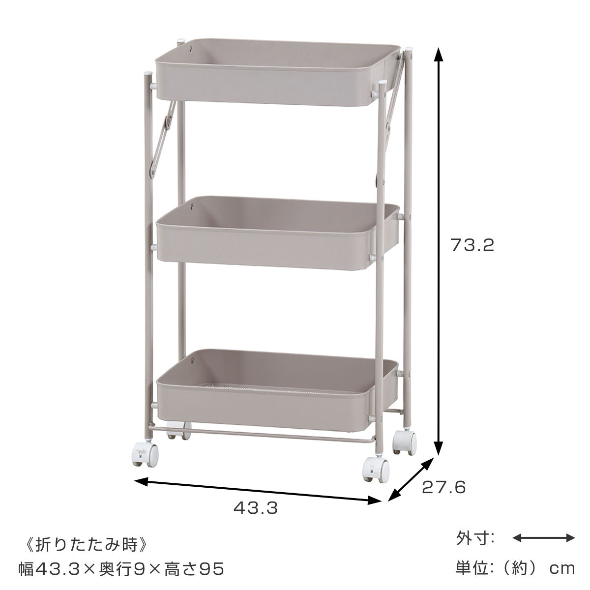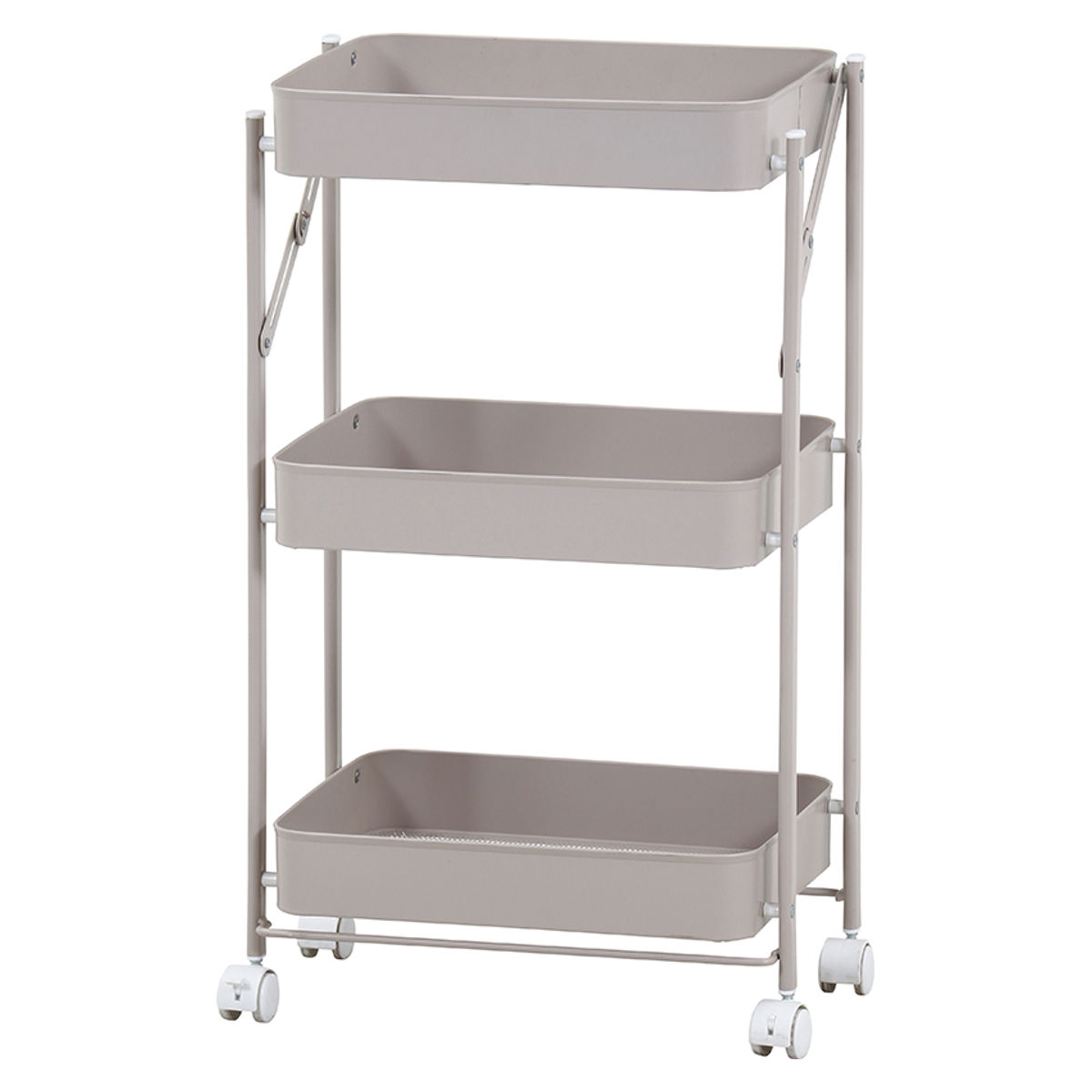 キッチンワゴン 組立て楽な折畳める ワゴン スパーク ( キッチンラック スチールラック 折りたたみ 収納 ラック キャスター 完成品 スチール メッシュ かご バスケット ストッカー メッシュ底 キッチン収納棚 ベビーワゴン ) 【グレージュ】