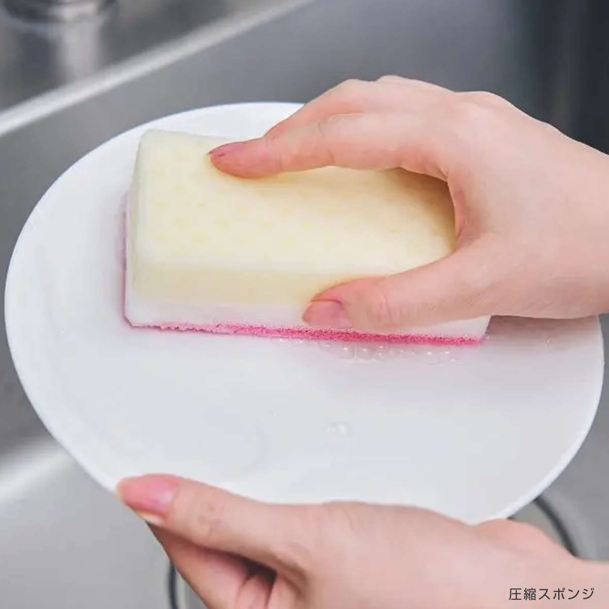 丈夫な圧縮ウレタンが、汚れをやさしくカキ落としてくれます。キズをつけにくい素材なので、食器はもちろん、フライパンや鍋、シンクまわりまで幅広く使える万能タイプです。