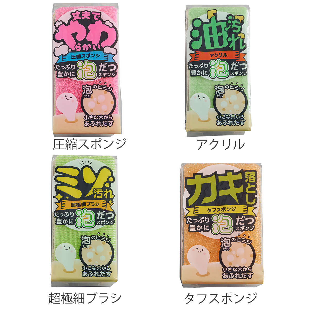 | 種類 | 圧縮スポンジ、アクリル、超極細ブラシ、タフスポンジ |