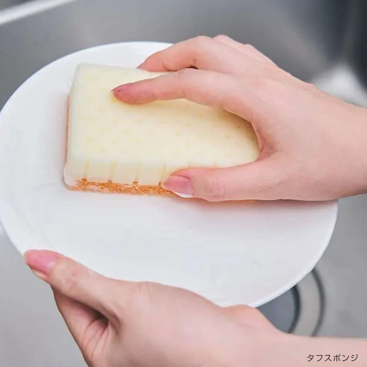 穴あきウレタン構造で少しの洗剤でもふんわり泡立ち、毎日の食器洗いがぐっとラクになります。貼り合わせ素材ならではの使い心地で、泡立ちにプラスして汚れ落ちも頼もしい仕上がりです。