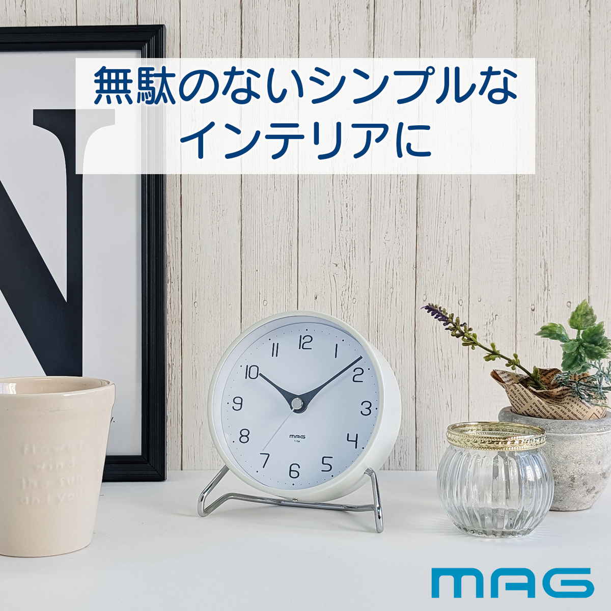 置き時計 連続秒針 静音 コージータイム MAG ( 時計 卓上置き時計 アナログ コンパクト おしゃれ 静か シンプル 白 ホワイト スタイリッシュ 寝室 ベッドサイド リビング 勉強机 )