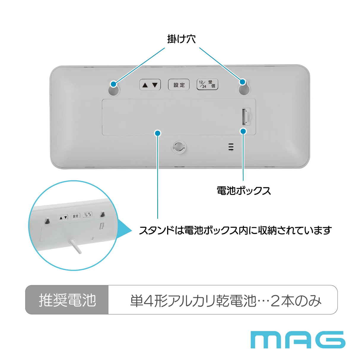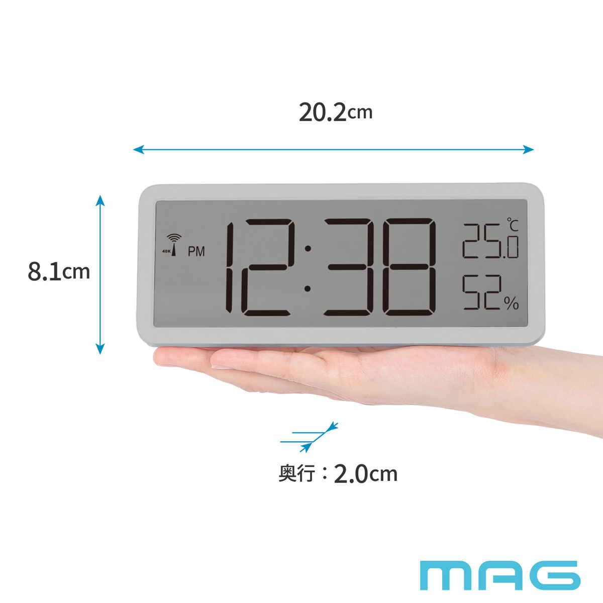 電波時計 デジタル 温湿度計付き 置き掛け兼用 MAG ( 置き時計 掛け時計 ウォールクロック 卓上 両用 時計 電波 シンプル かわいい 寝室 ベッドサイド リビング 勉強机 温度 湿度 電池交換おしらせ機能 )