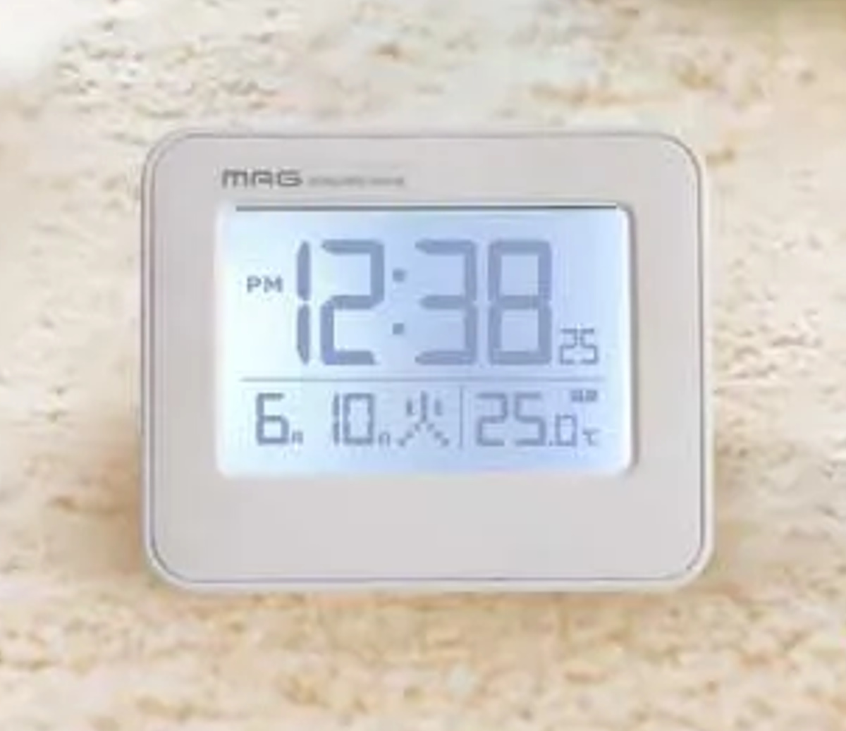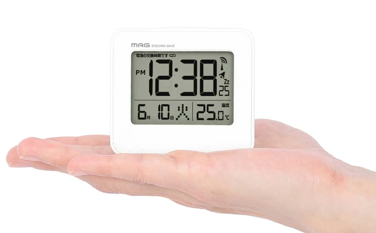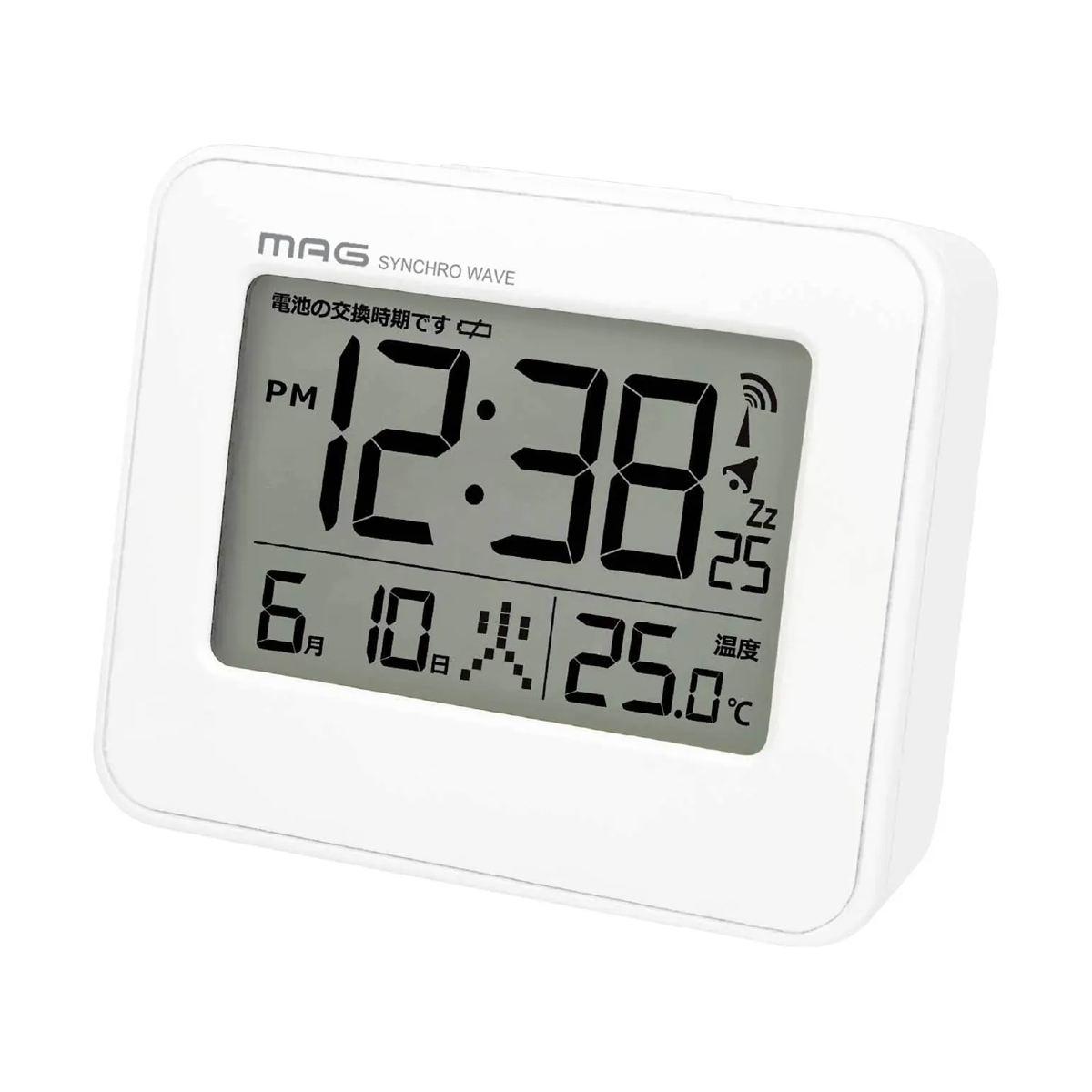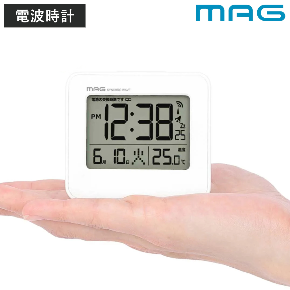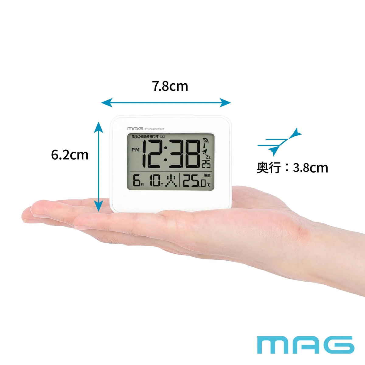 電波時計 デジタル コンパクト カレンダー付き 温度計付き 目覚まし時計 MAG ( 置き時計 目覚し時計 めざまし時計 アラームクロック 時計 ライト 電波 ミニ シンプル 寝室 ベッドサイド リビング 勉強机 )