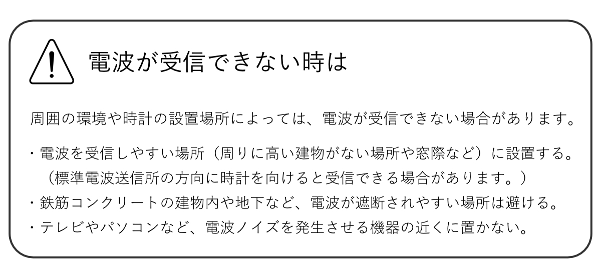 ●電波受信マーク付きで、正確な時刻に自動調整されているかを確認できます。