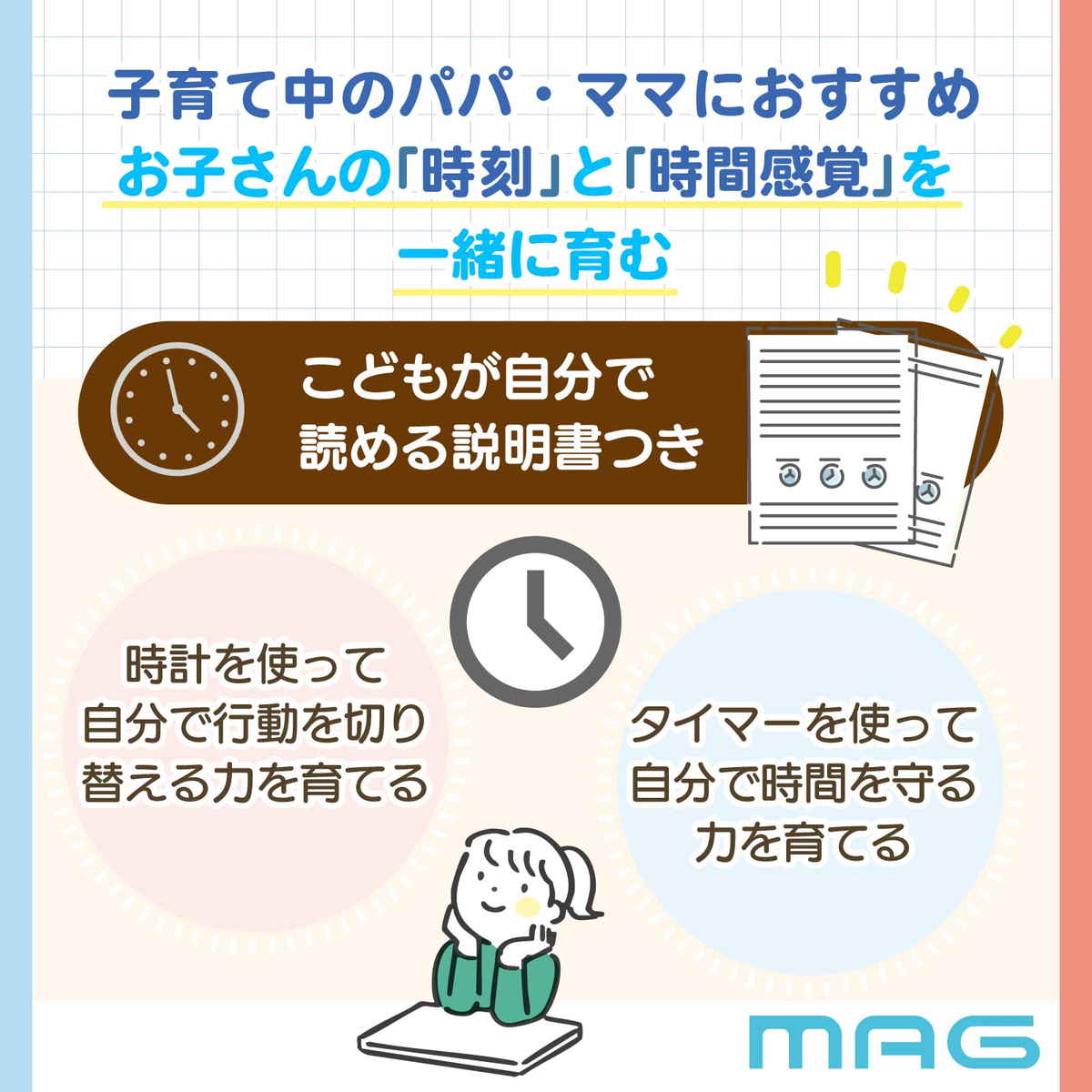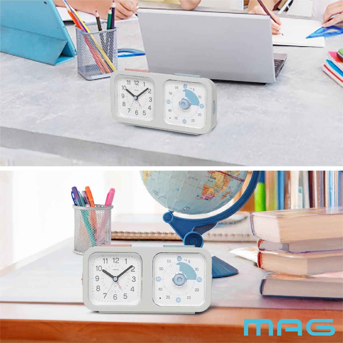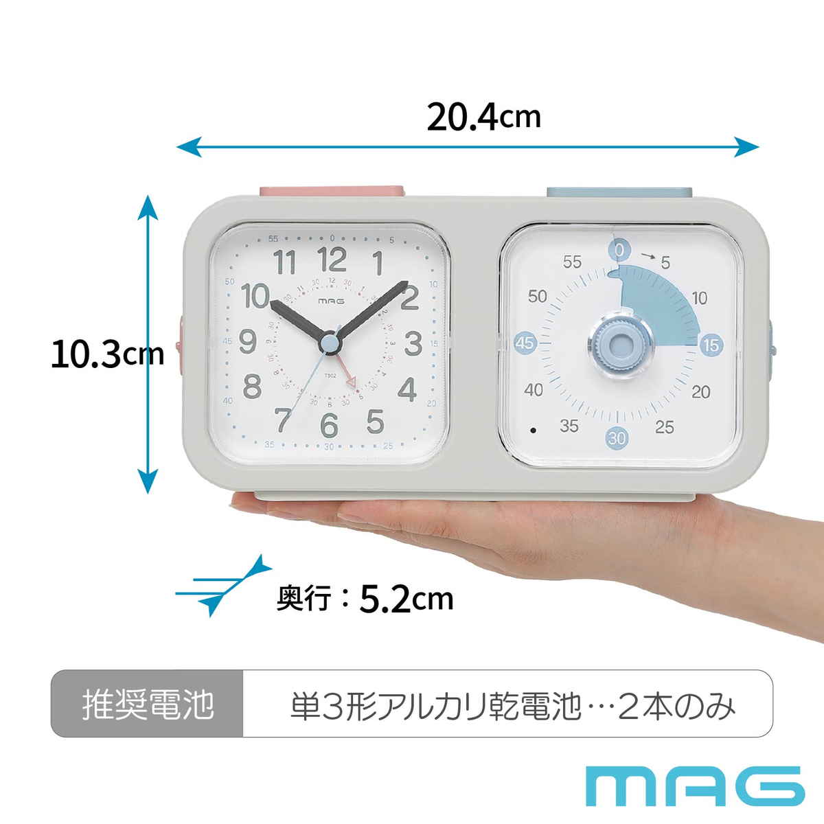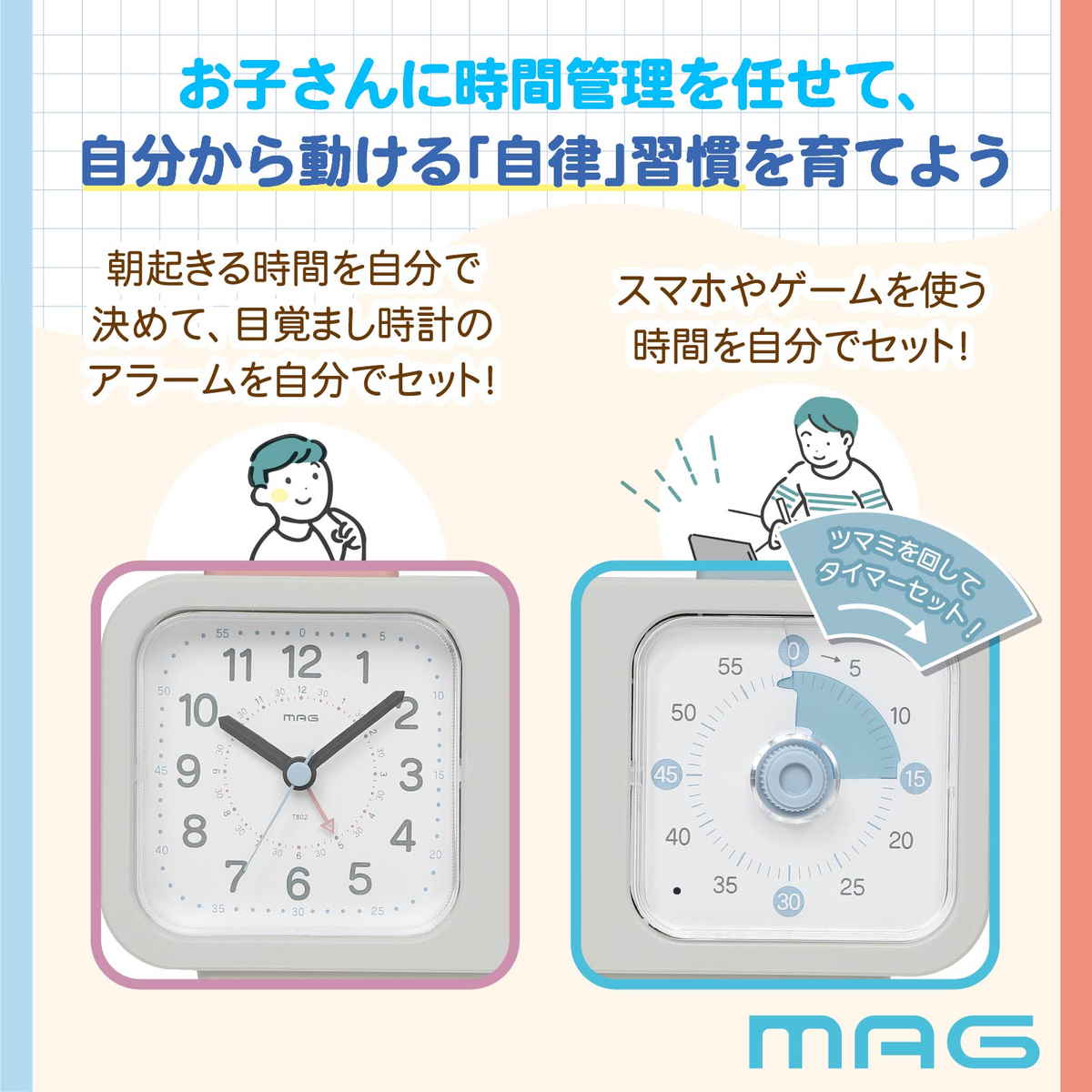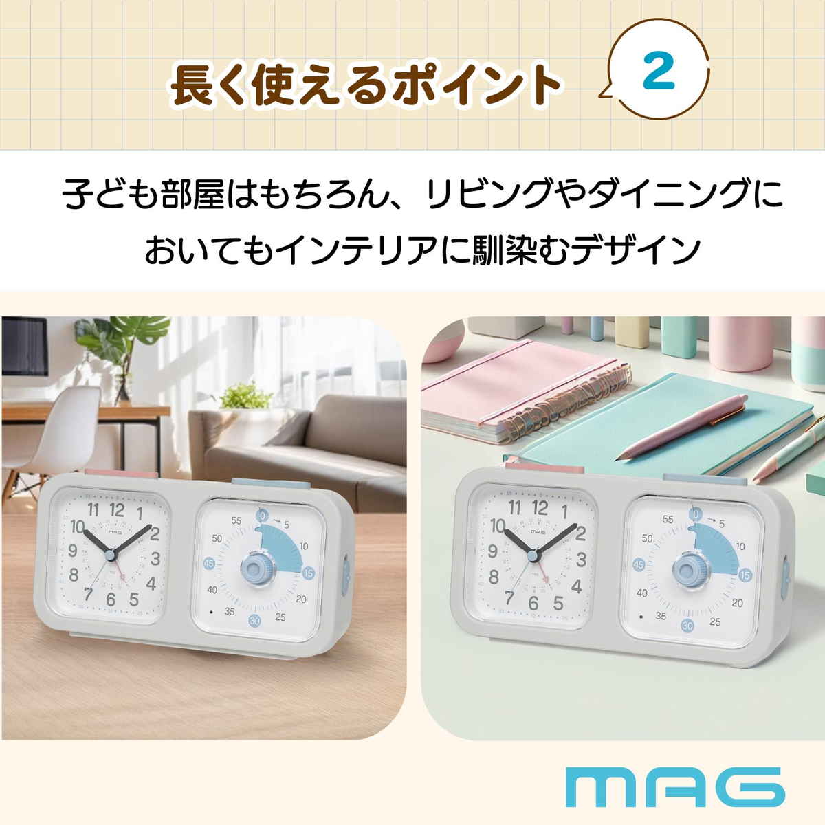 知育時計よーめる 連続秒針 静音 タイマー付き 置き時計 MAG ( 卓上時計 アナログ タイマー 知育時計 時計 クロック 時間管理 小学生 中学生 大人 切り替え 宿題 受験勉強 自立 習慣 勉強 ゲーム 目覚まし時計 )