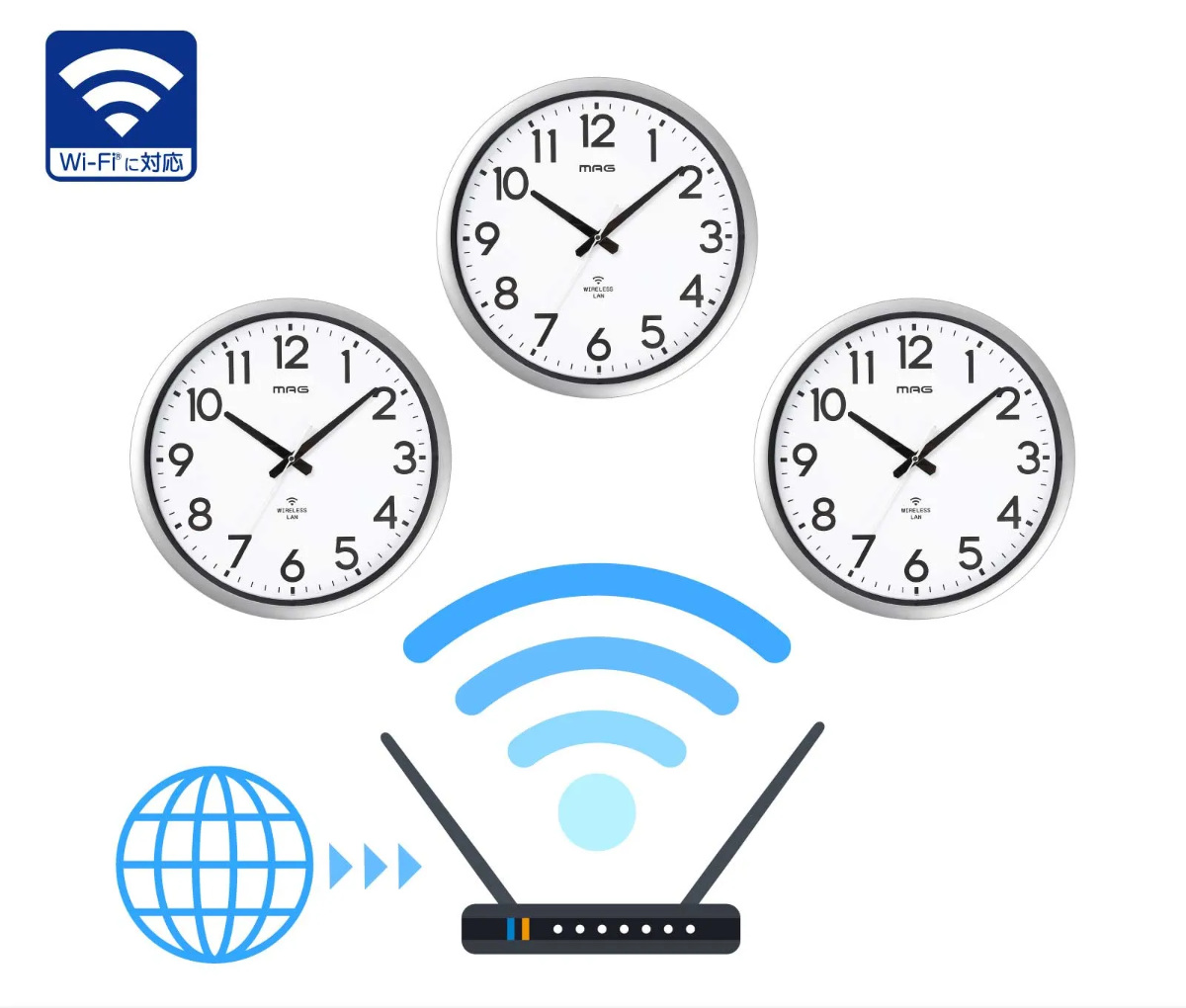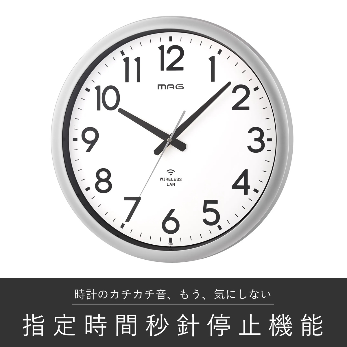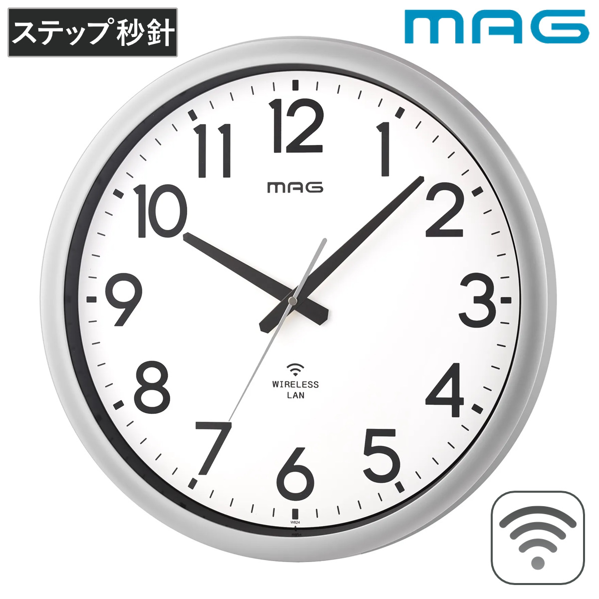 掛け時計 大型 Wi-Fi対応 無線LAN ステップ秒針 MAG ( 時計 壁掛け時計 ウォールクロック アナログ 壁 かけ時計 掛時計 単三電池 大きい おしゃれ とけい クロック 壁かけ時計 壁掛け インテリア アプリ不要 秒針停止機能 )
