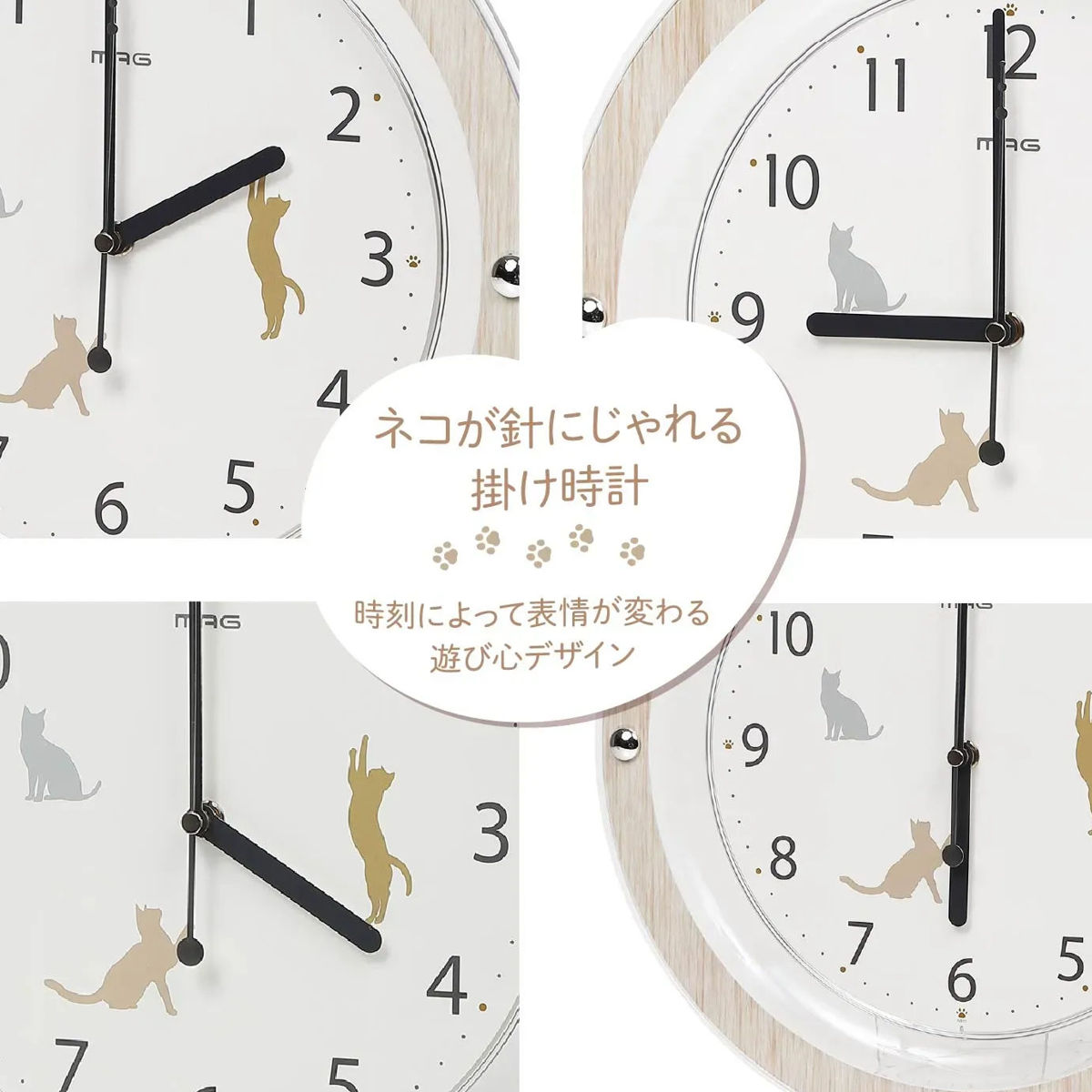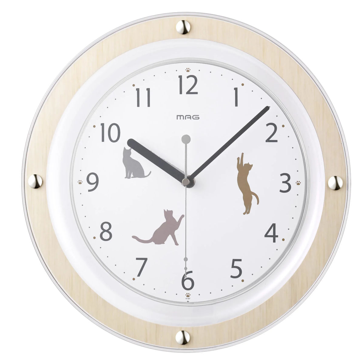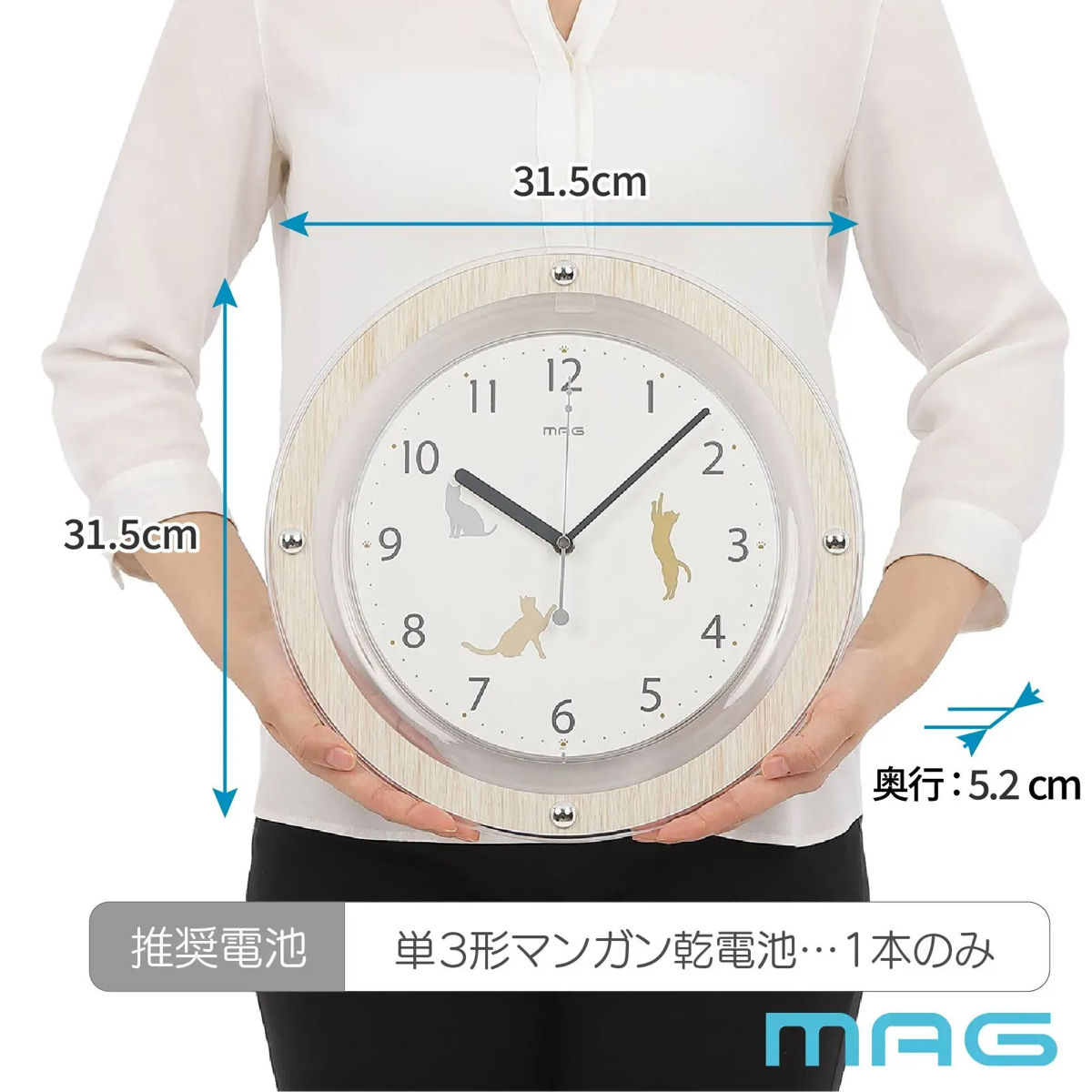 掛け時計 猫 連続秒針 静音 MAG ( 時計 壁掛け時計 ウォールクロック アナログ ネコ ねこ 動物 アニマル おしゃれ とけい クロック 壁かけ時計 壁掛け インテリア 壁 かけ時計 掛時計 静か 単三電池 )
