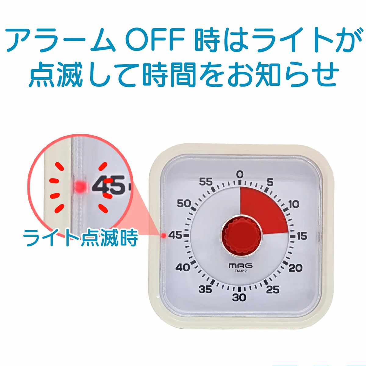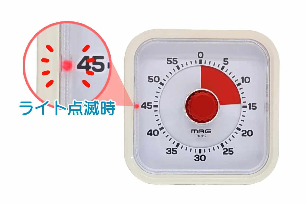 アラーム音を鳴らさずライト点滅でお知らせする消音モードを搭載。 図書館、教室でも安心して使用できます。