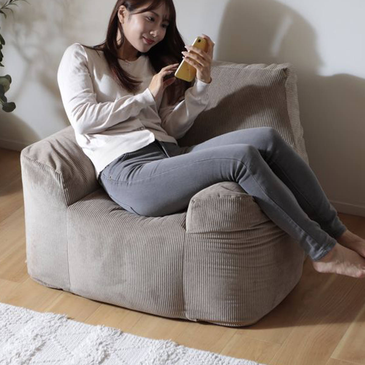 ビーズクッションには背もたれと肘掛けをデザインすることで、すっぽりと身体を包むような座り心地。読書や映画鑑賞などさまざまなシーンにもぴったりです。