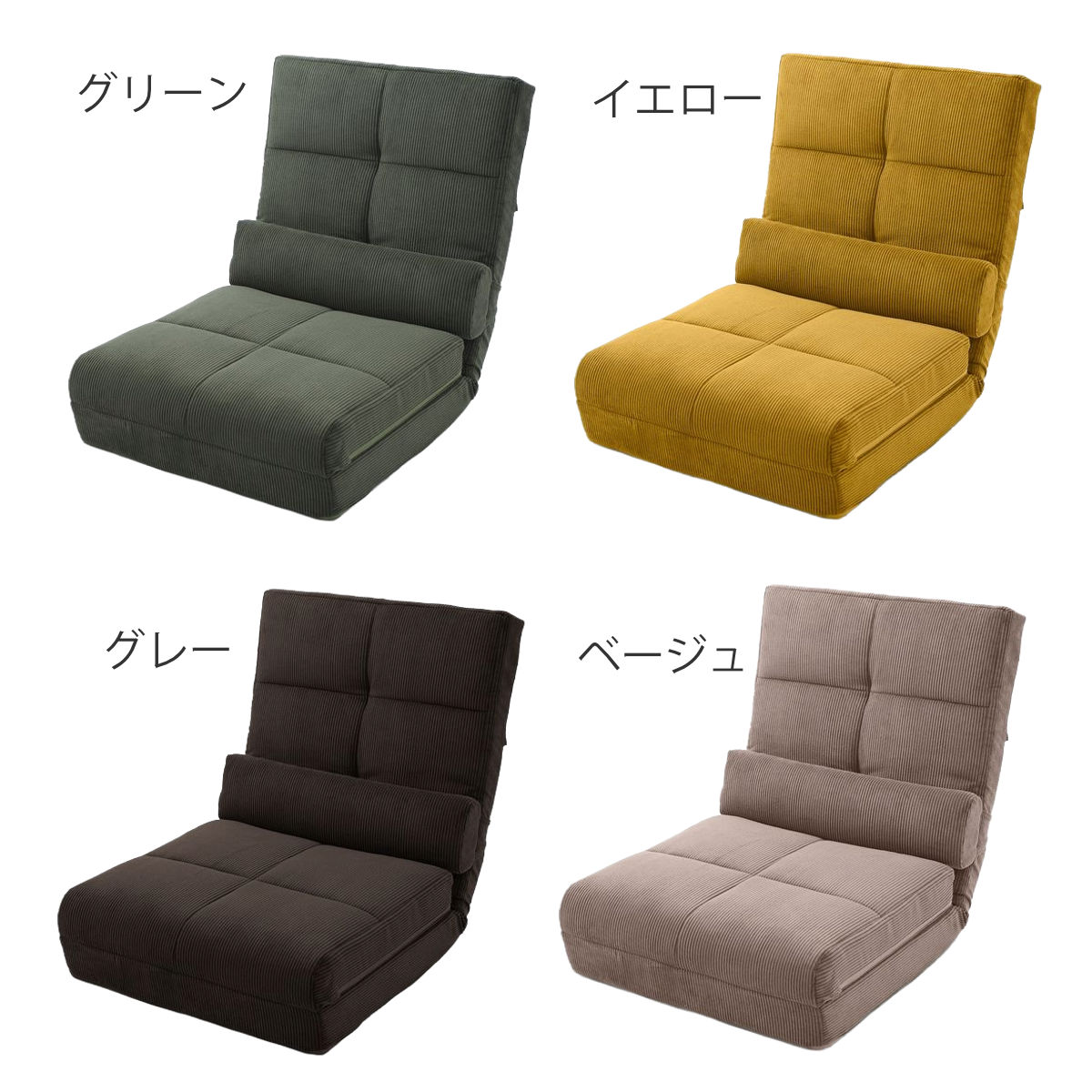 座椅子 幅60cm 3way ローソファ コーディロイ ( ソファ カウチ ベッド リクライニング 14段階 座いす 座イス ソファベッド フルフラット 簡易ベッド 来客用 ハイバック 背もたれ クッション付き 折りたたみ コンパクト ) 【グリーン】のレビュー