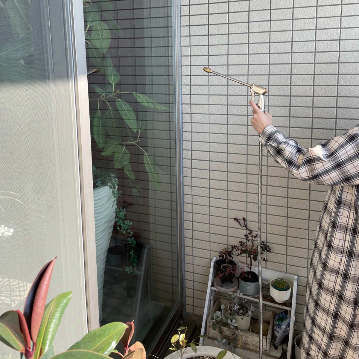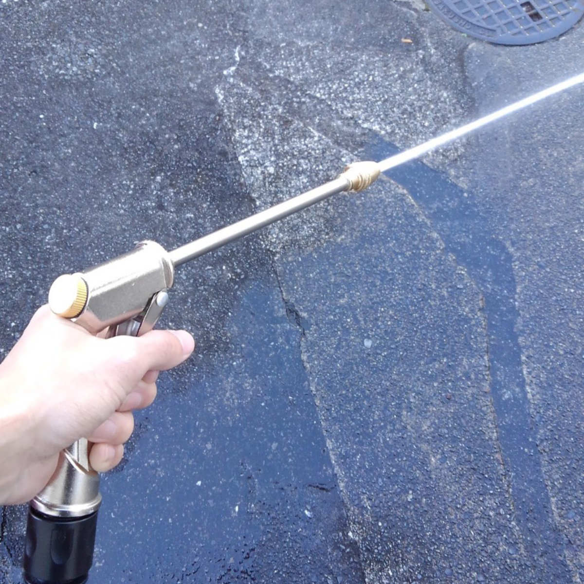 ウォーターガンは、ジェット・シャワー2種類の水流切り替えが可能です。ガーデニングや洗車はもちろん、パワフルな水圧で外壁掃除など幅広く活躍します。