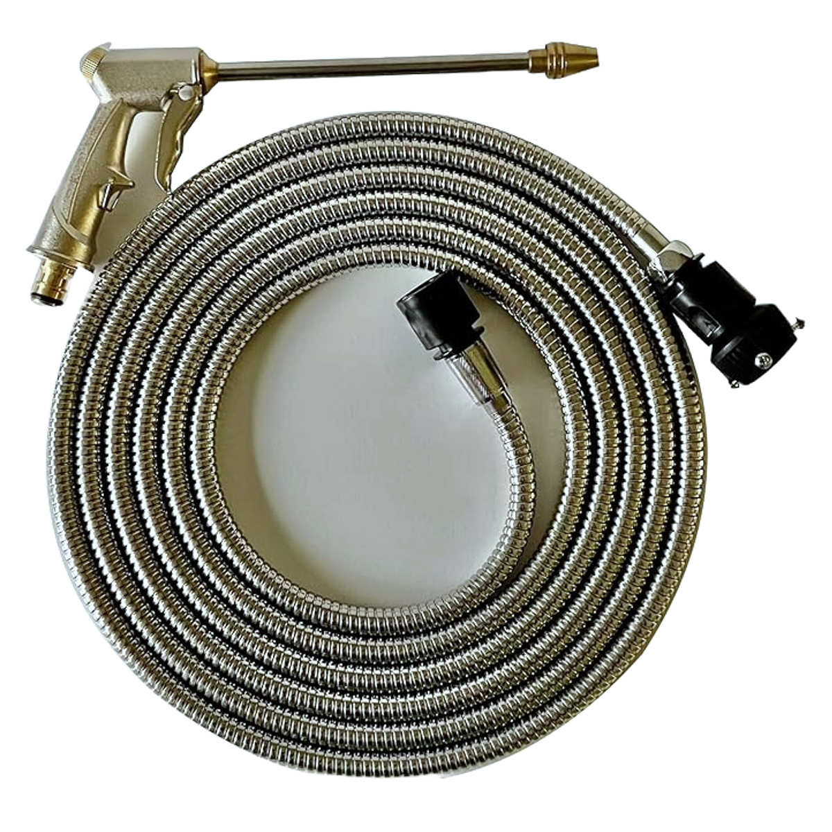 | 材質 | ホース:18-8ステンレススチール、エチレンプロピレンジエンゴム(EPDM) ジョイント:ABS、ステンレススチール ウォーターガン:アルミニウム合金、真鍮、ステンレススチール パッキン:天然ゴム |