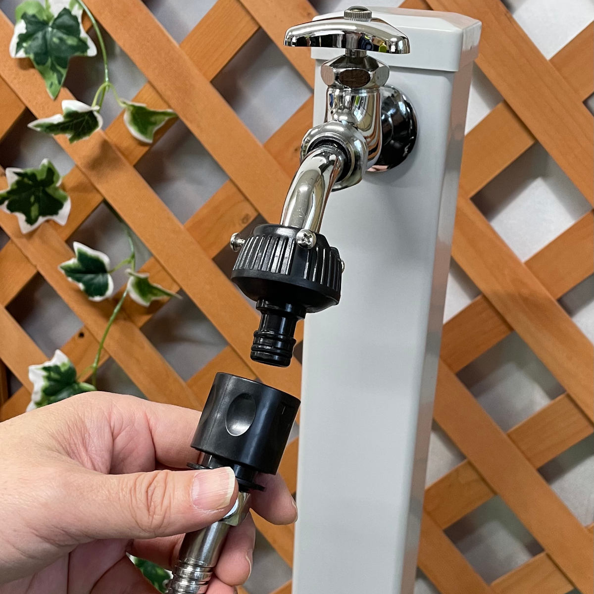 専用ジョイントで蛇口に取り付けできます。アタッチメント付きなので、ホースの脱着も簡単にできます。