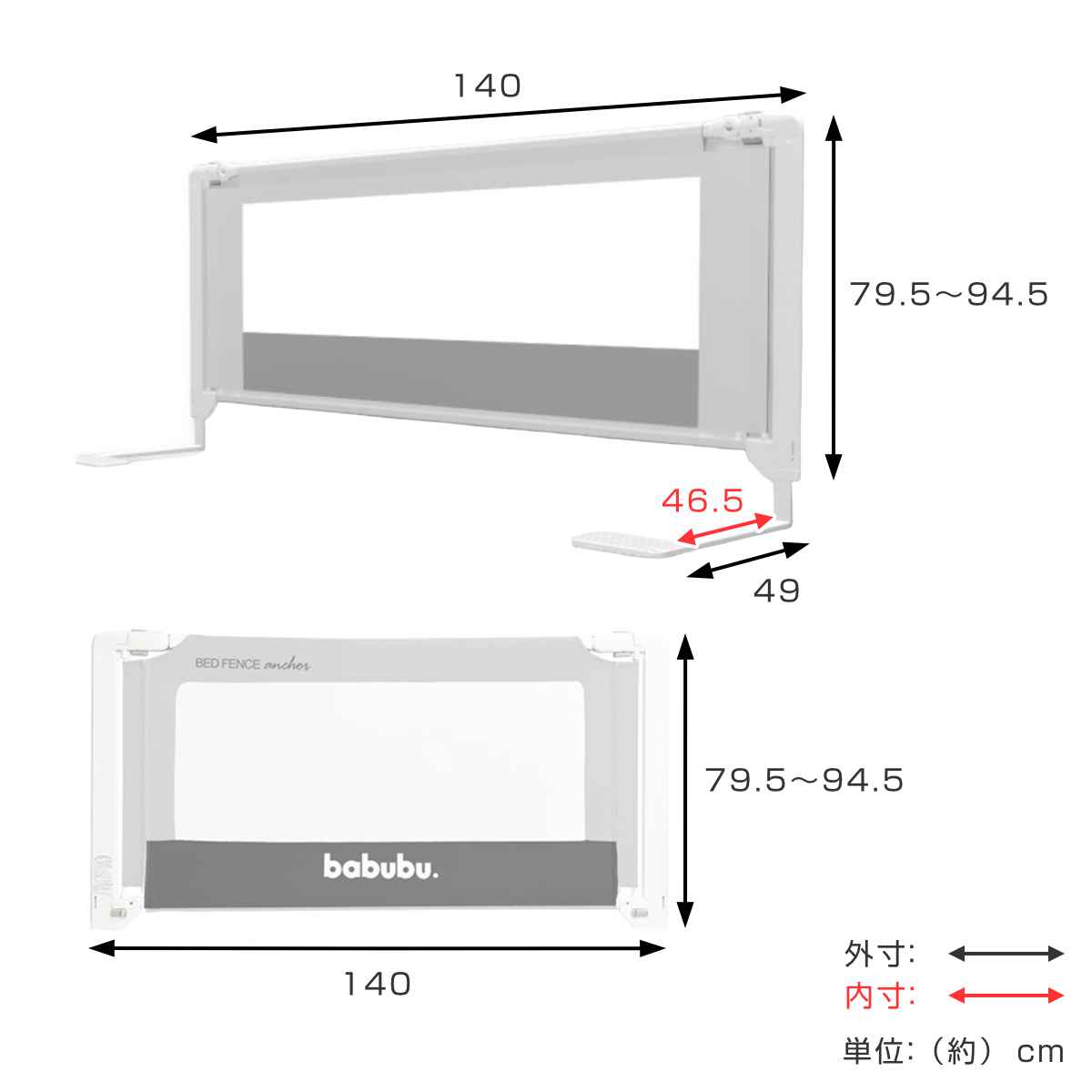 ベッドフェンス バブブベッドフェンスアンカー 140cm babubu. ( ベッドガード ベビーベッド ベッド ガード 赤ちゃん 転落防止 柵 安全対策 日本製 添い寝 安全 ベビーベッドガード ベビーサークル 落下防止 メッシュ ベビー 幼児 ) 【トープ】