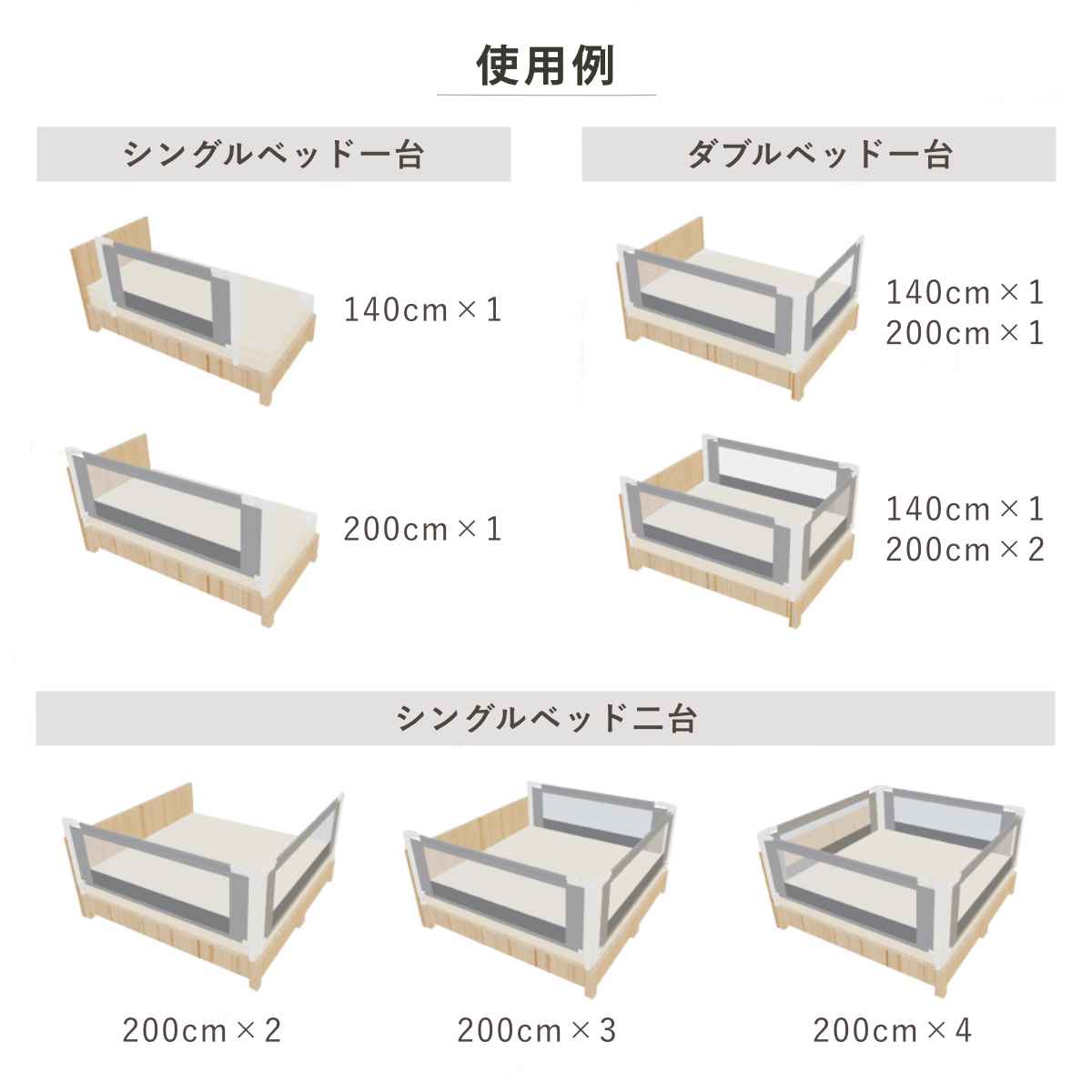 大切な赤ちゃんを守るベッドフェンスアンカー 幅140cm