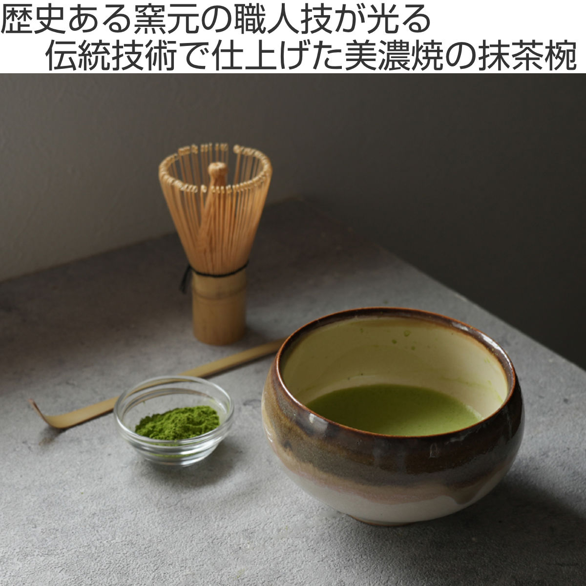 土・釉薬・焼成にこだわる、功山窯の美濃焼抹茶ぼうる 12.2cm