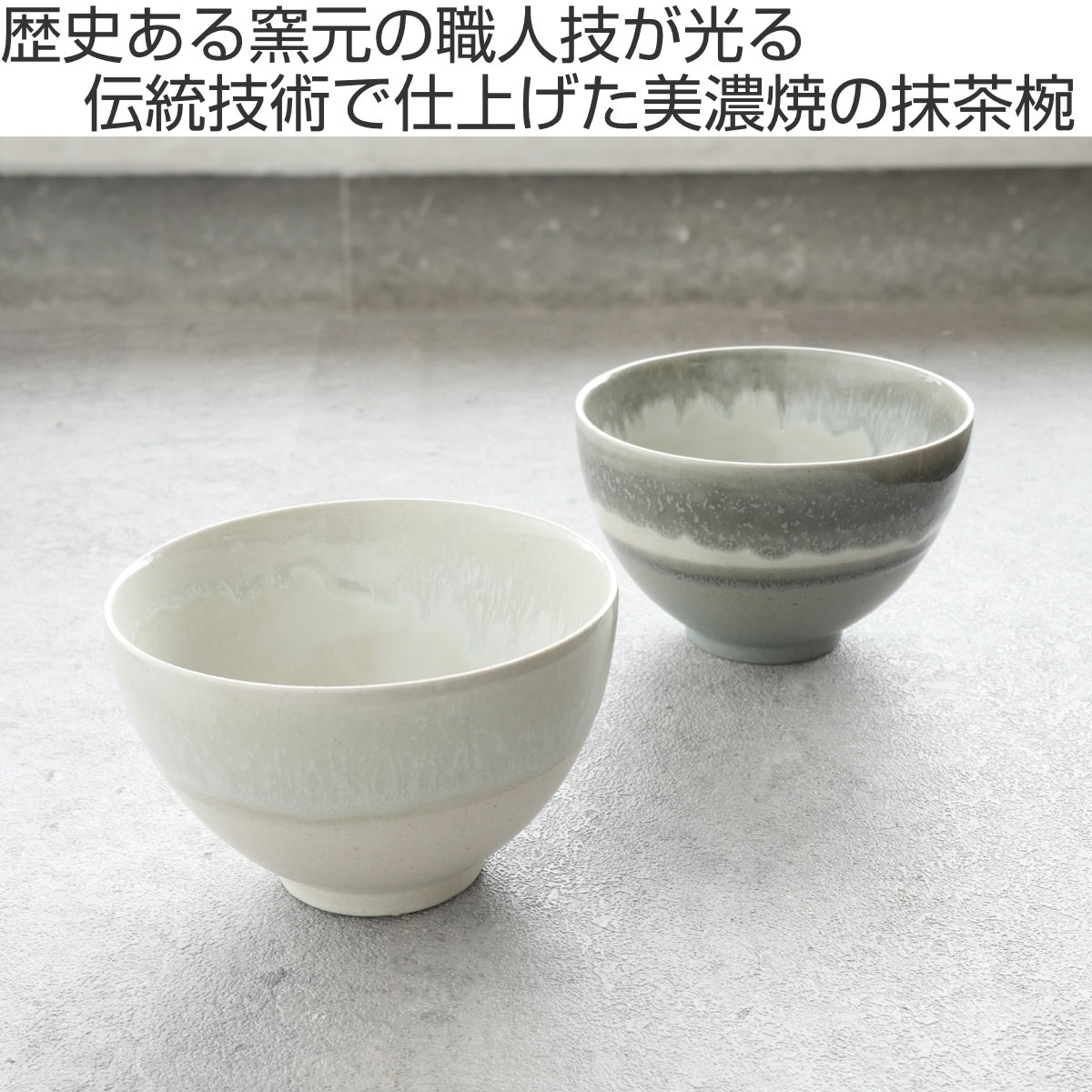 美濃焼の伝統を受け継ぐ窯元「伸光窯」が丁寧に仕上げた抹茶椀です。雪と氷柱の景色を思わせる凛とした表情が、抹茶の緑を美しく引き立てます。抹茶椀としてはもちろん、和デザートや小鉢としても使え、箱入りで贈り物にもおすすめです。