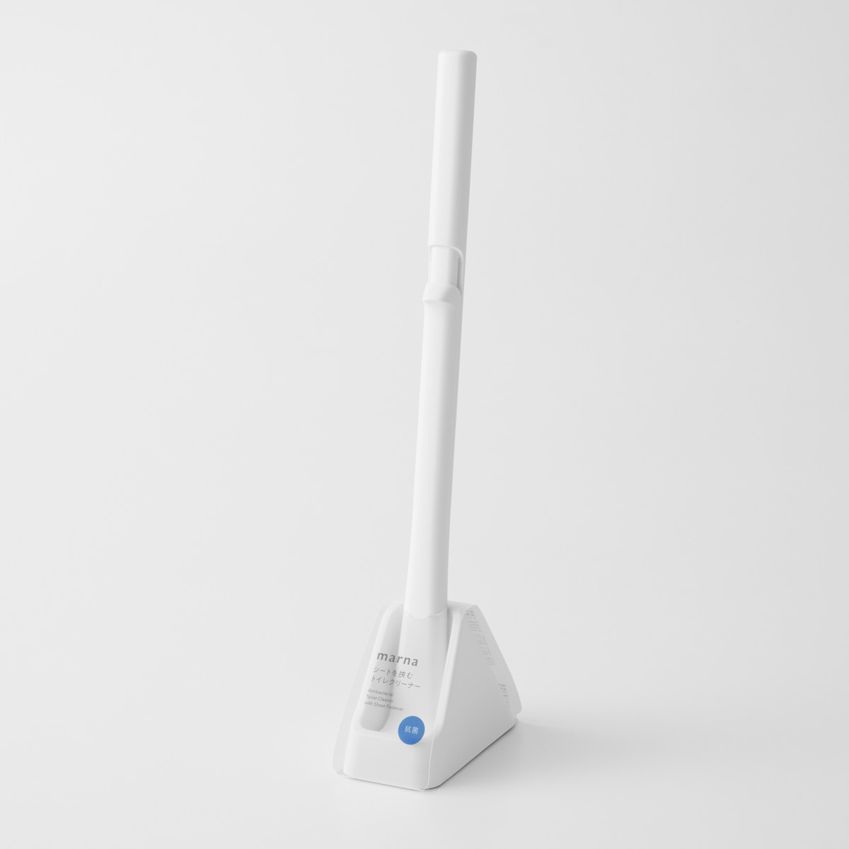 marna マーナ シートを挟むトイレクリーナー・W ( トイレクリーナー 抗菌 トイレ 使い捨てブラシ 流せるトイレブラシ ケース付き コンパクト 柄が長い トイレ用品 ホワイト 白 収納 スタンド 本体 ブラシ入れ 置き型 ワンタッチ )