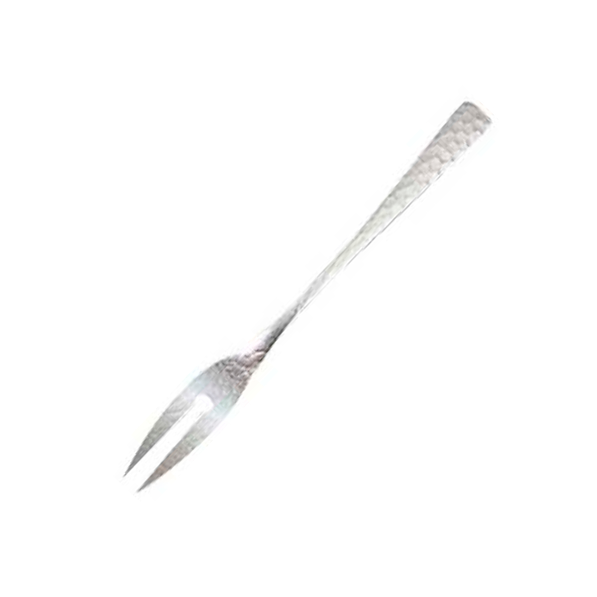 ステンレス素材に施した槌目模様が、光をやわらかく反射するヒメフォークです。無機質になりがちな金属に、手仕事の温もりを感じさせる表情をプラスしました。和洋どちらの食卓にも自然になじむ、上品な一本です。
