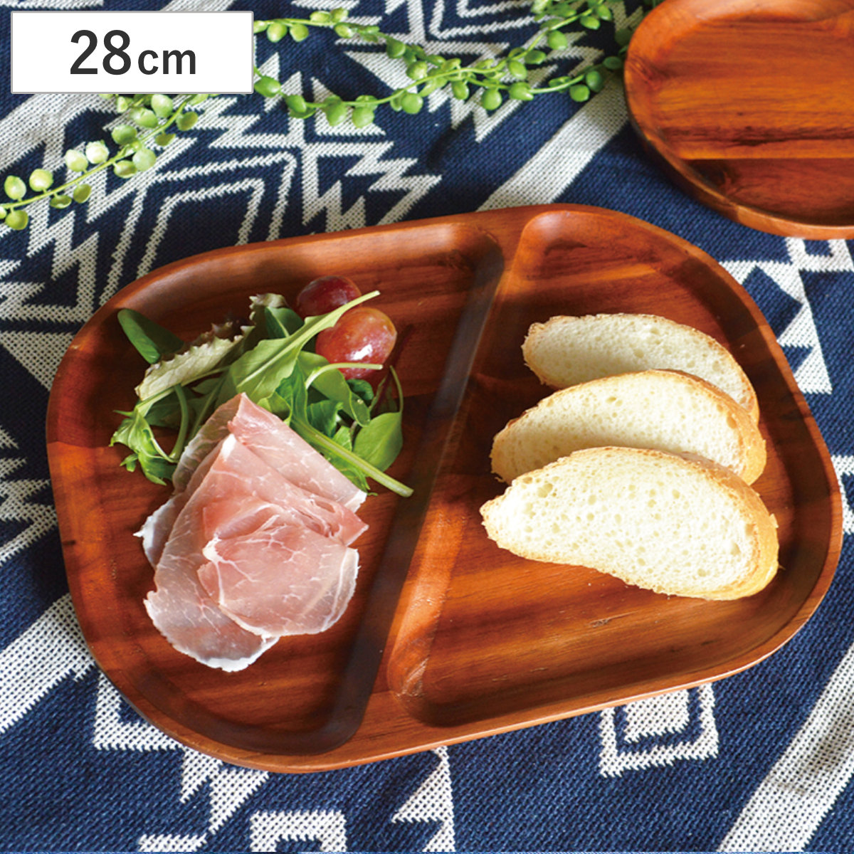 天然木ならではの風合いと木目を活かした仕上がりで、料理を引き立てて見せるプレートです。軽食にサンドウィッチやくだものを添えて丁度いいサイズです。朝食・ランチ・ディナーまで幅広い料理に対応します。