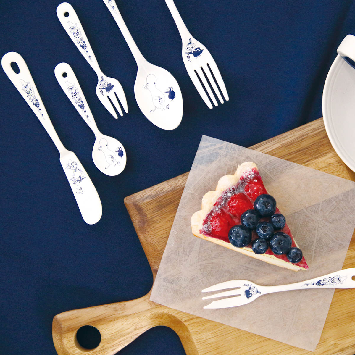 同シリーズのティースプーンやケーキフォークと合わせることで、テーブル全体に統一感が生まれます。ムーミンの世界観を取り入れた、北欧風・カフェ風コーディネートが完成します。