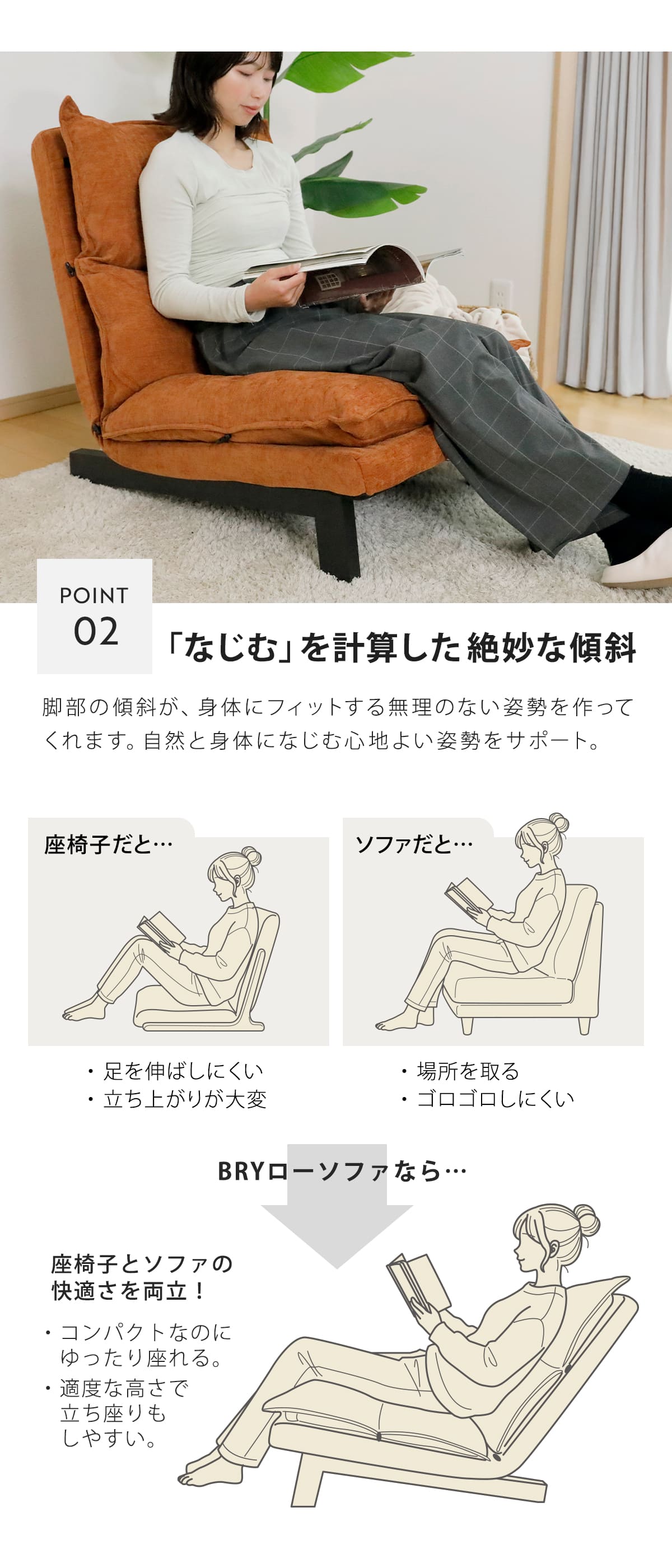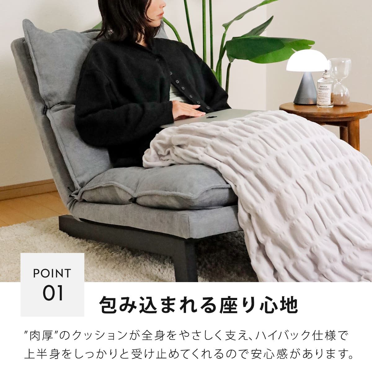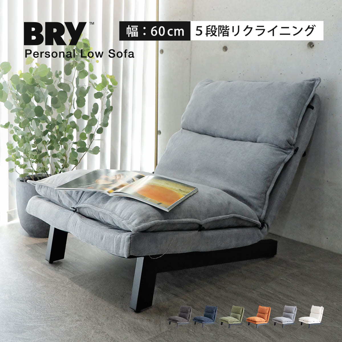 ローソファ 1人掛け BRY 座椅子 リクライニング 5段階 ( リクライニングチェア フロアチェア 組立簡単 一人暮らし 幅約60cm ハイバック フロアソファ 1人用 すっぽり収まる 背もたれ ゆったり 大きめ コンパクトソファ クッション ) 【ブラック】