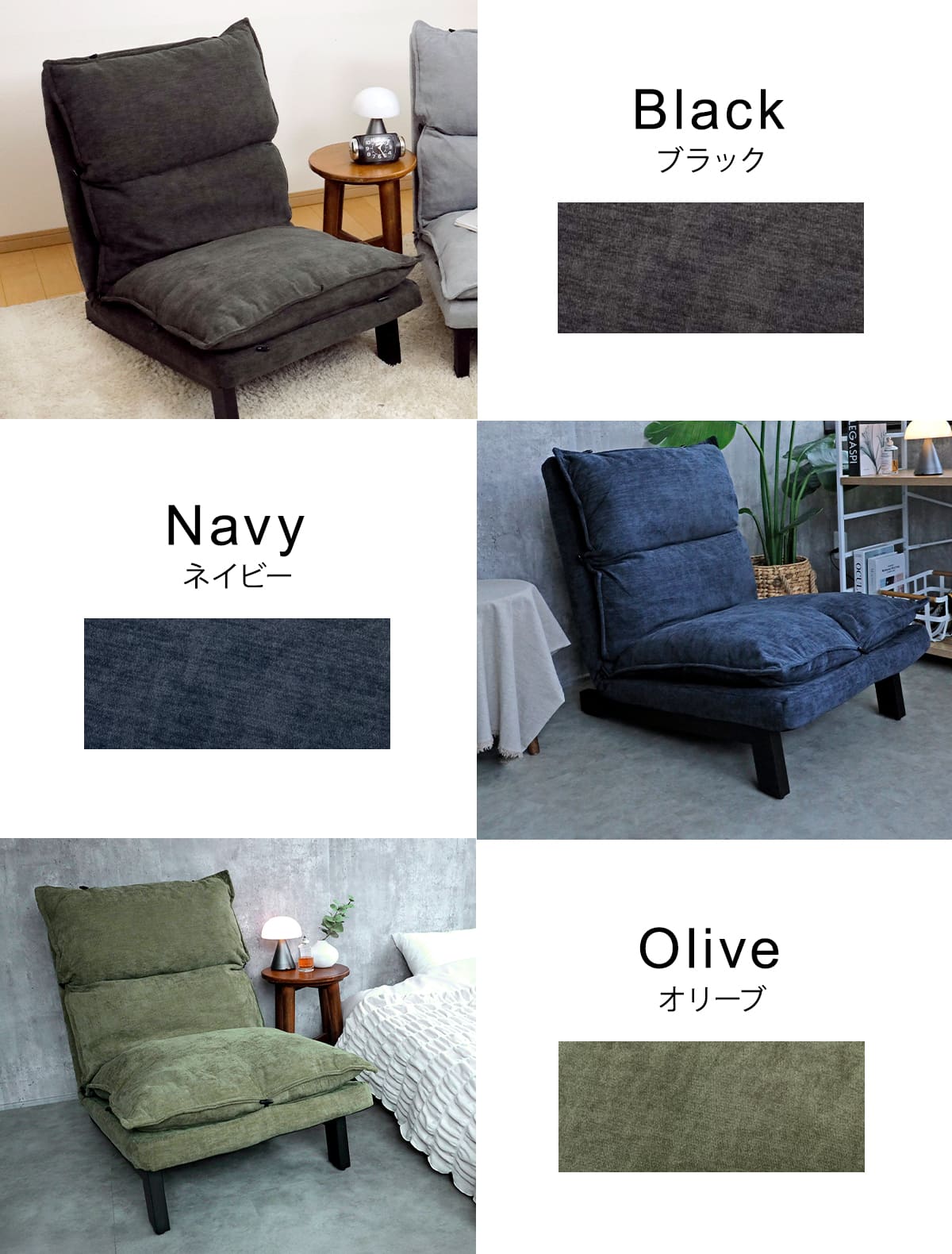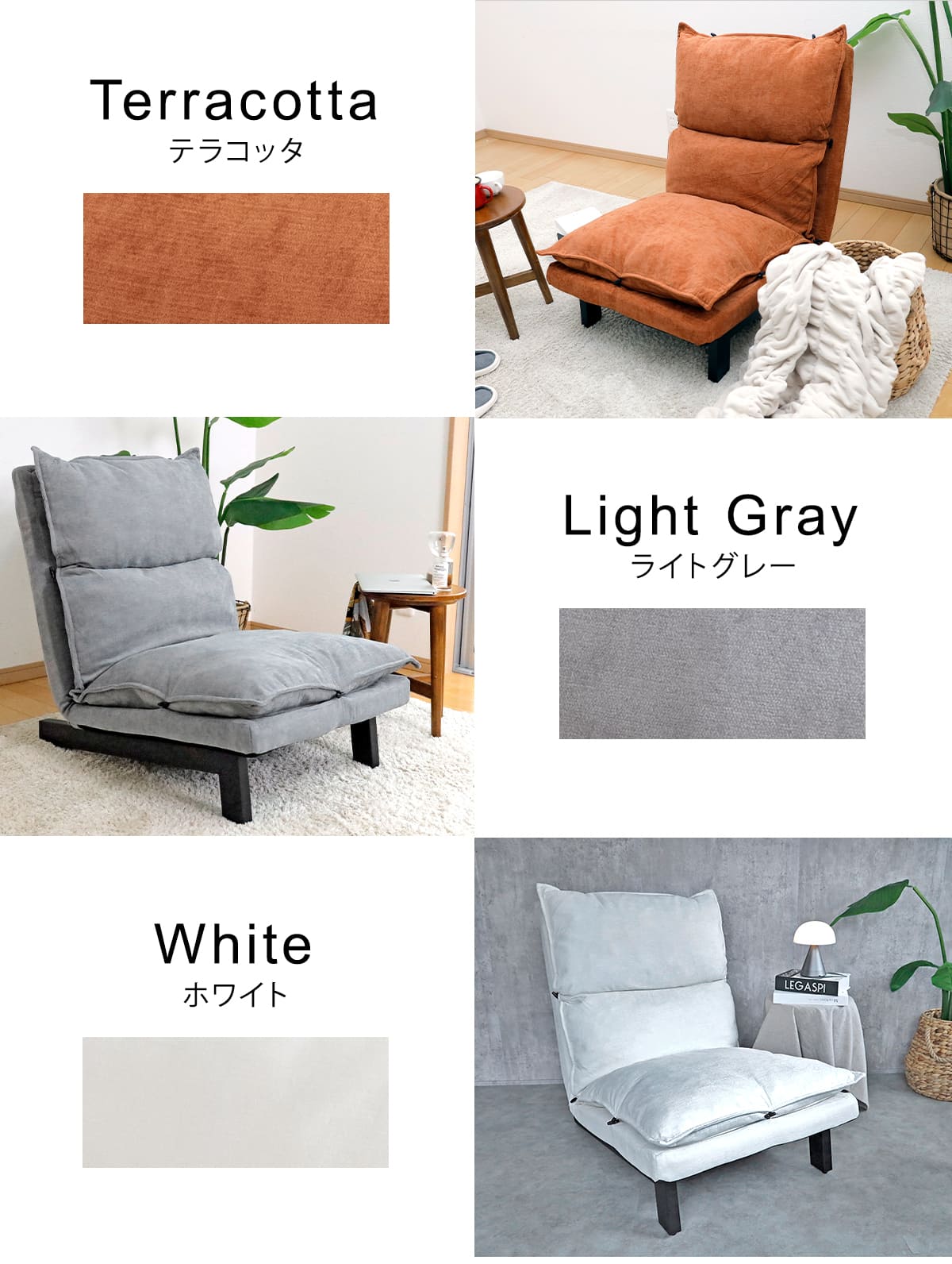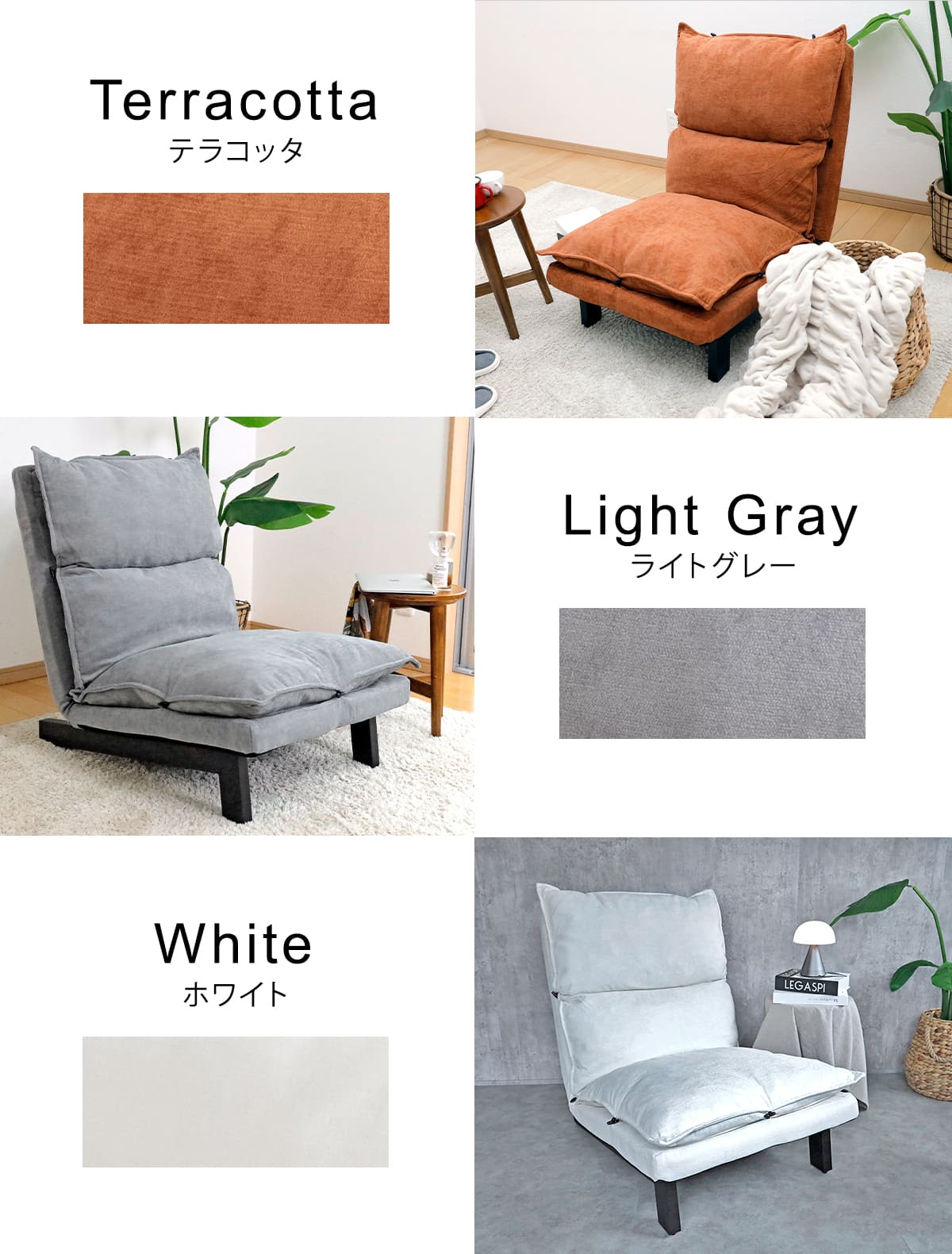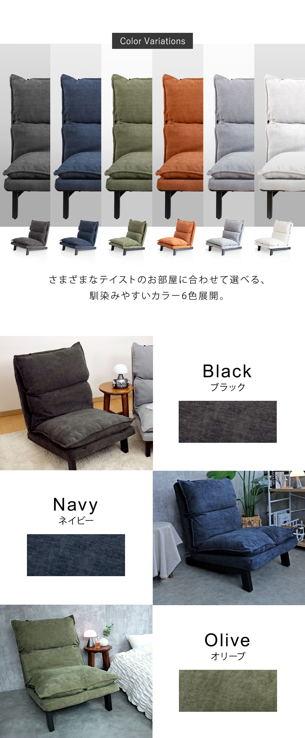 | 種類 | ブラック、テラコッタ、ホワイト、オリーブ、ネイビー、ライトグレー |