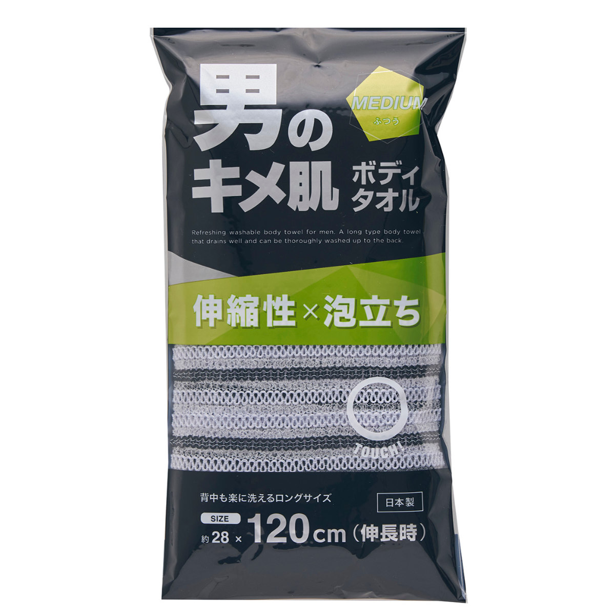 ボディタオル ふつう 伸縮時120cm キメ肌ボディタオル ( ウォッシュタオル ロング 伸縮 ボディータオル 浴用タオル 泡立ち 日本製 バスグッズ タオル 体洗い お風呂タオル しっかり洗える )
