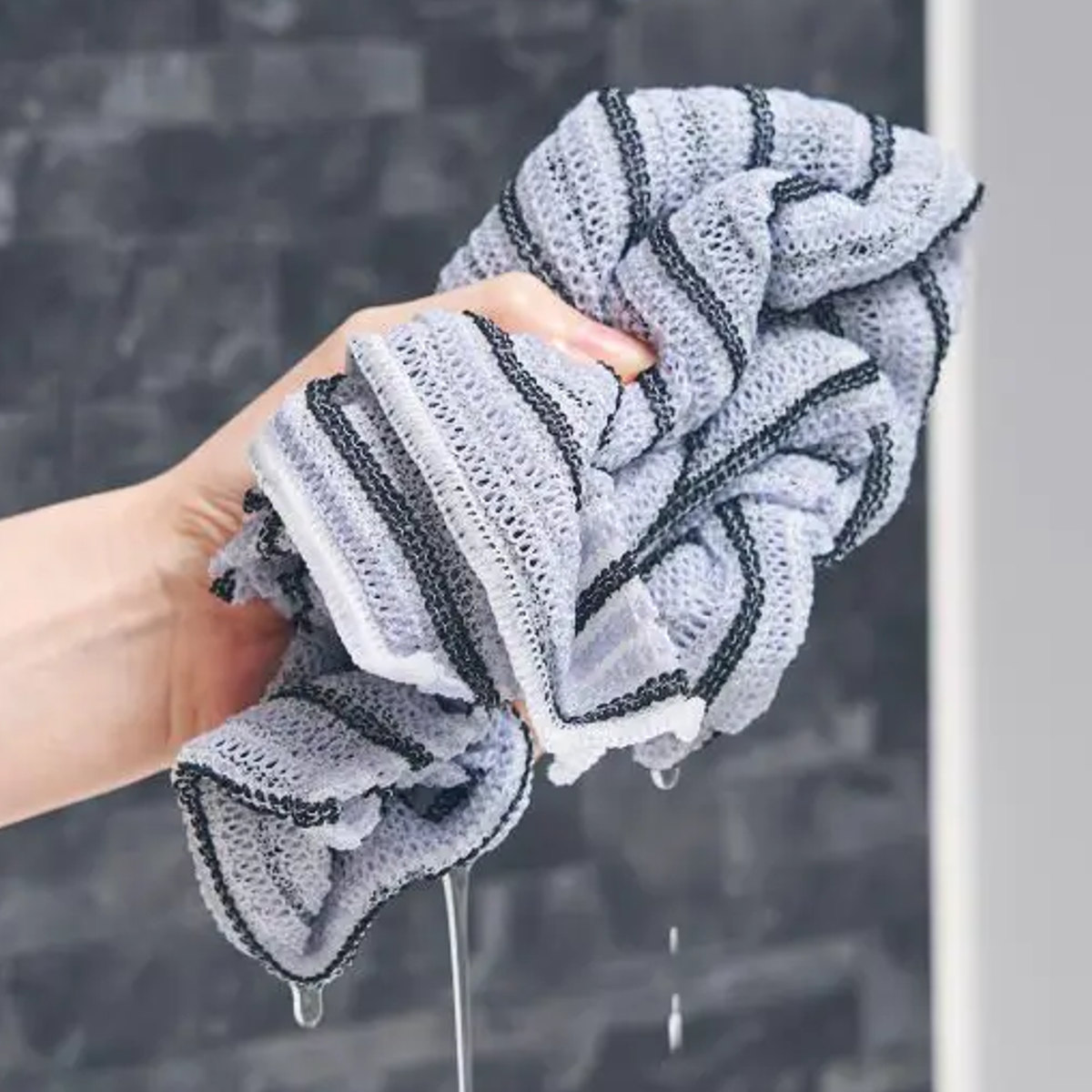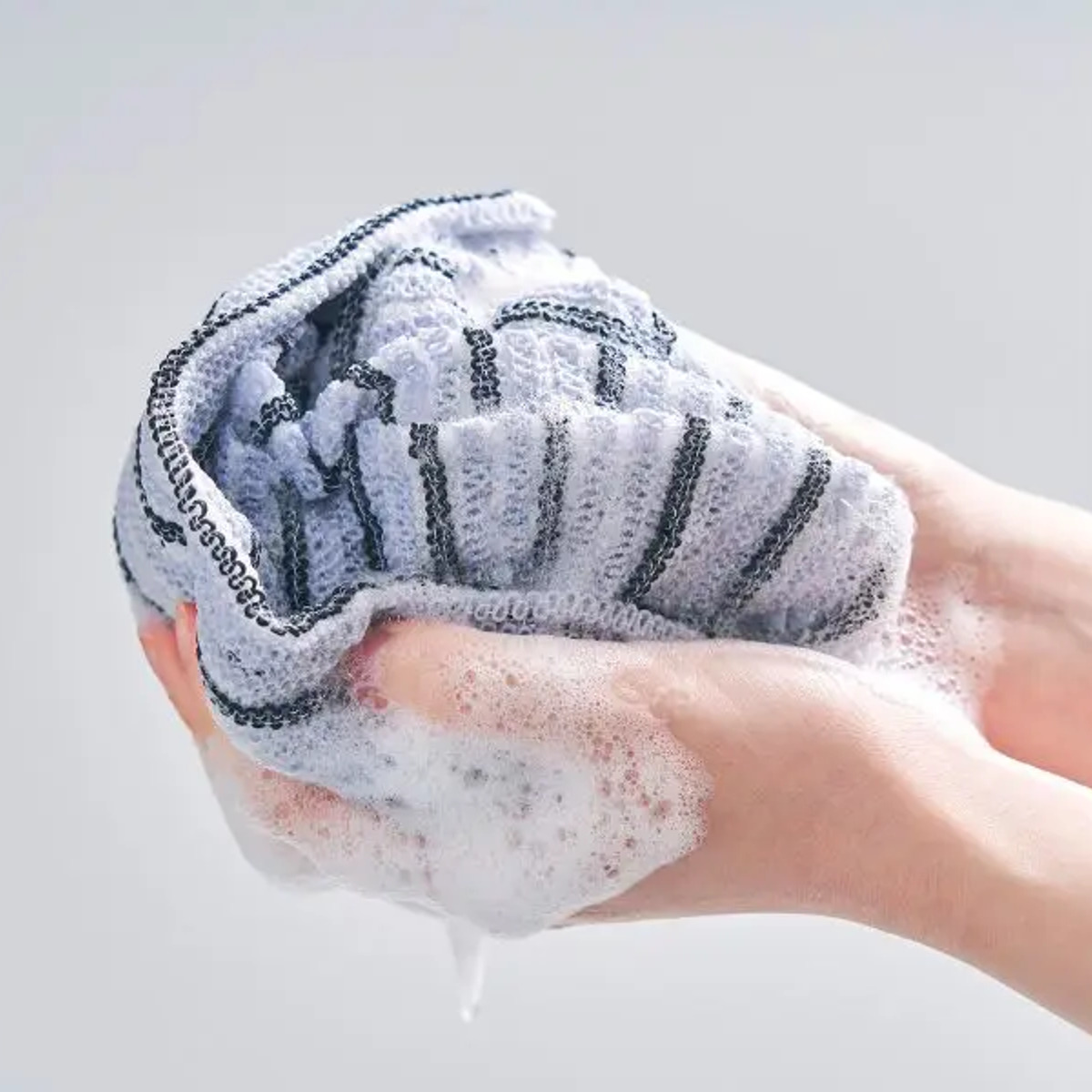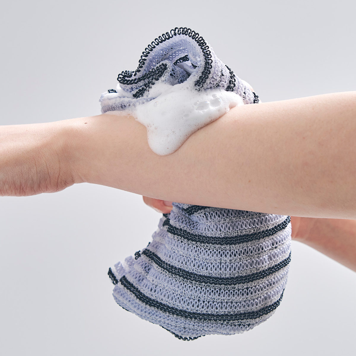 ●ふわふわ編みで泡立ちがよく、伸び縮みするボディタオルです。