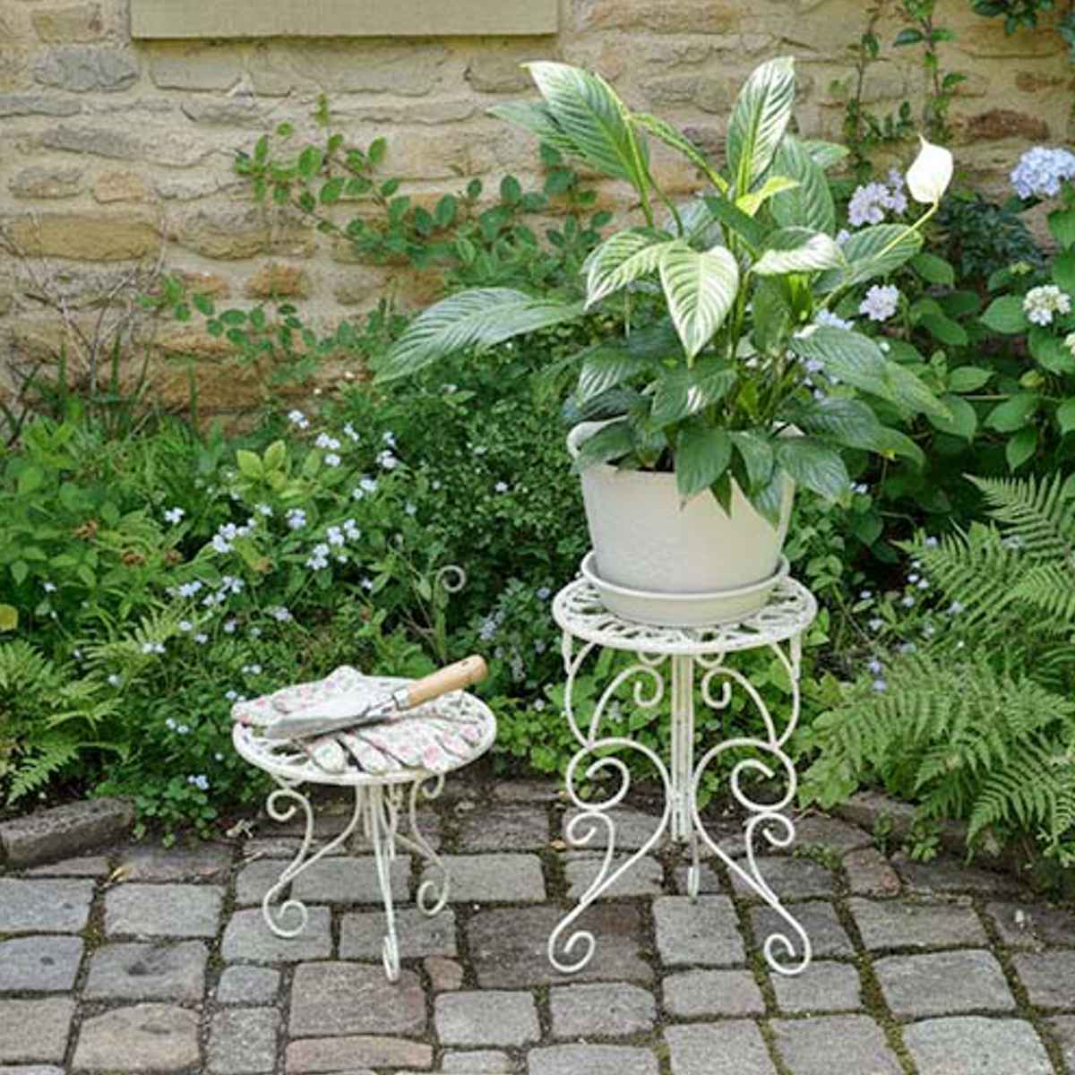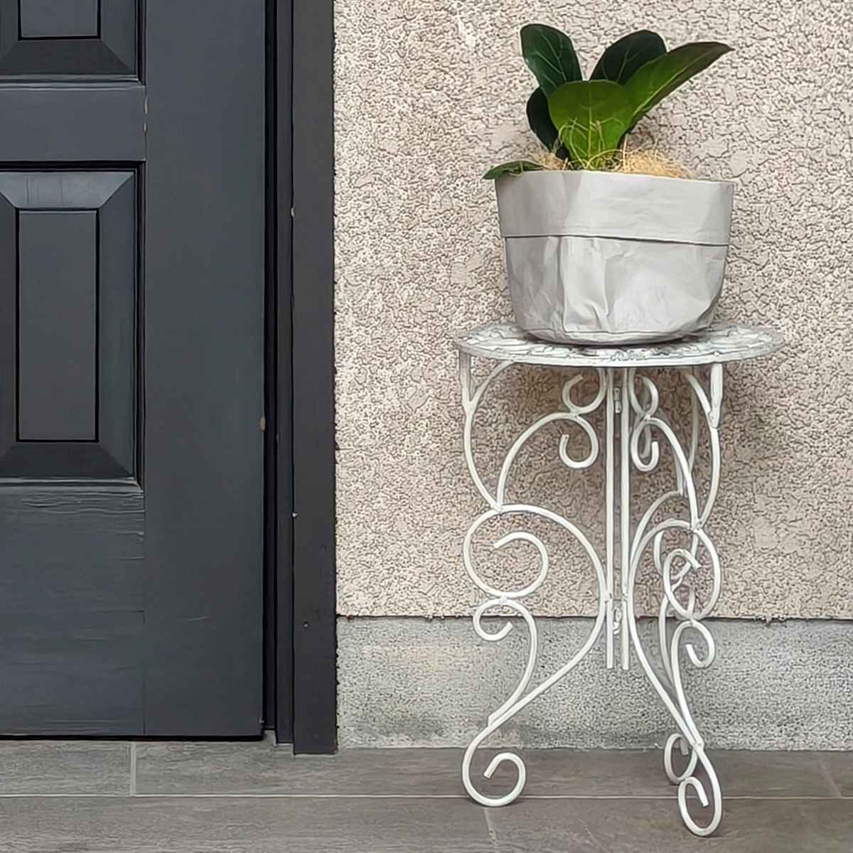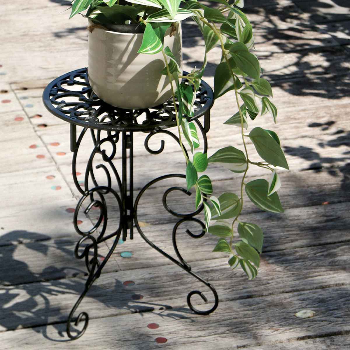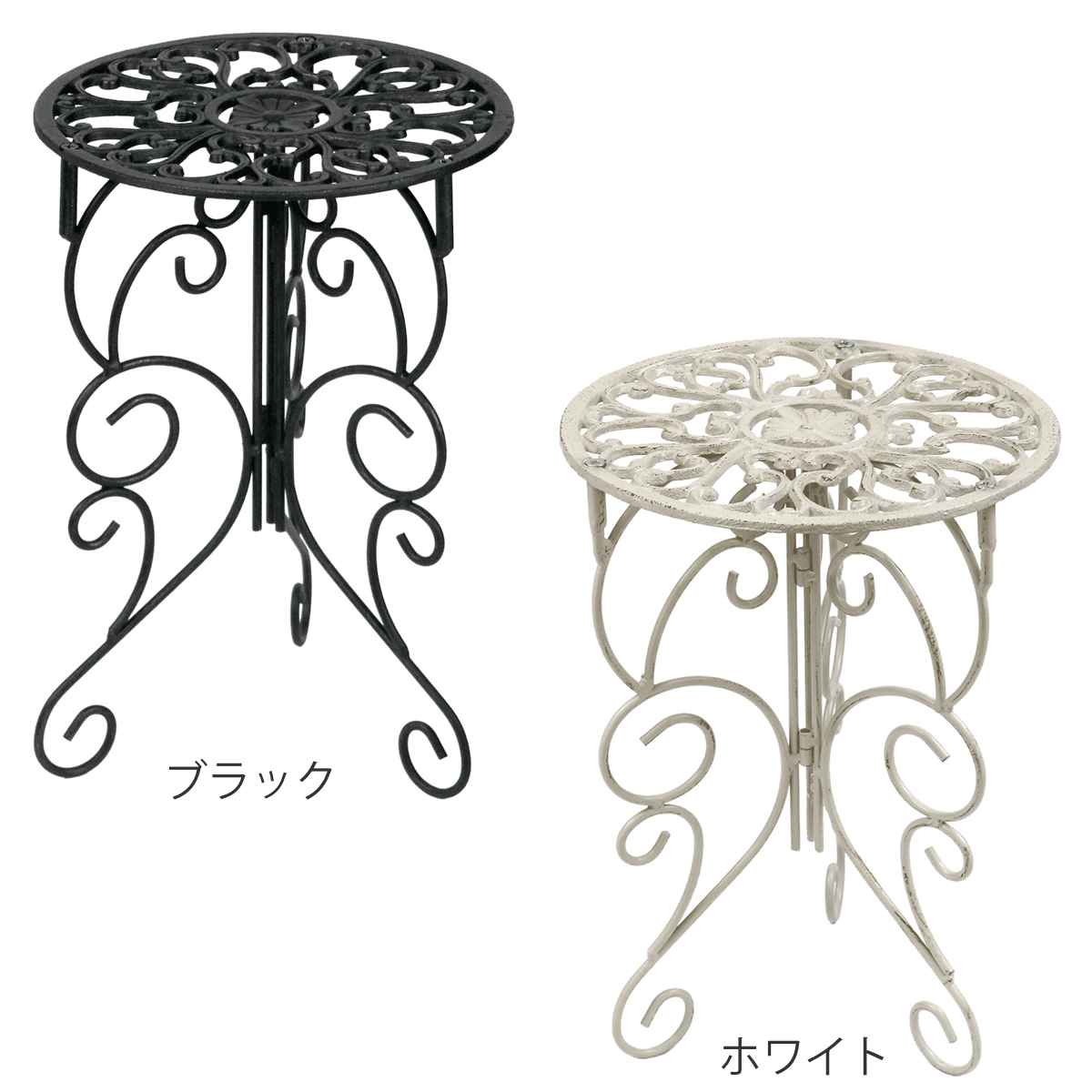 透かし模様が美しいプランタースタンドです。お気に入りの植物を美しく引き立てて、玄関先やお庭に華やかなアクセントを添えます。