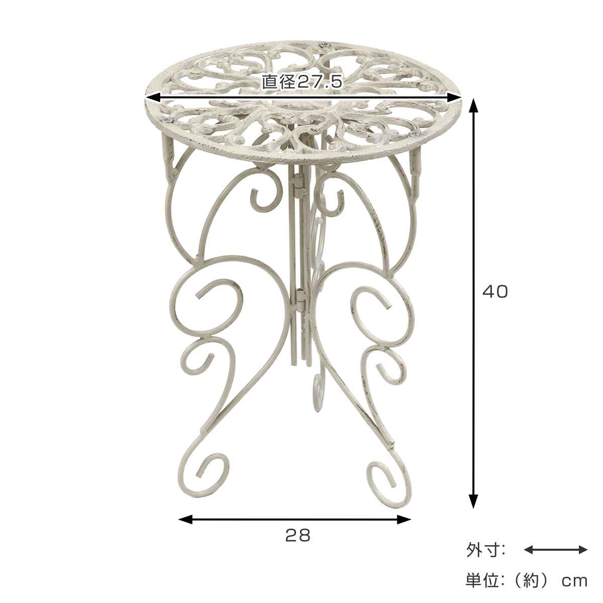 | サイズ | 約 天板直径27.5×高さ40(cm) 脚部幅:約28(cm) 天板の厚み:約0.6(cm) |