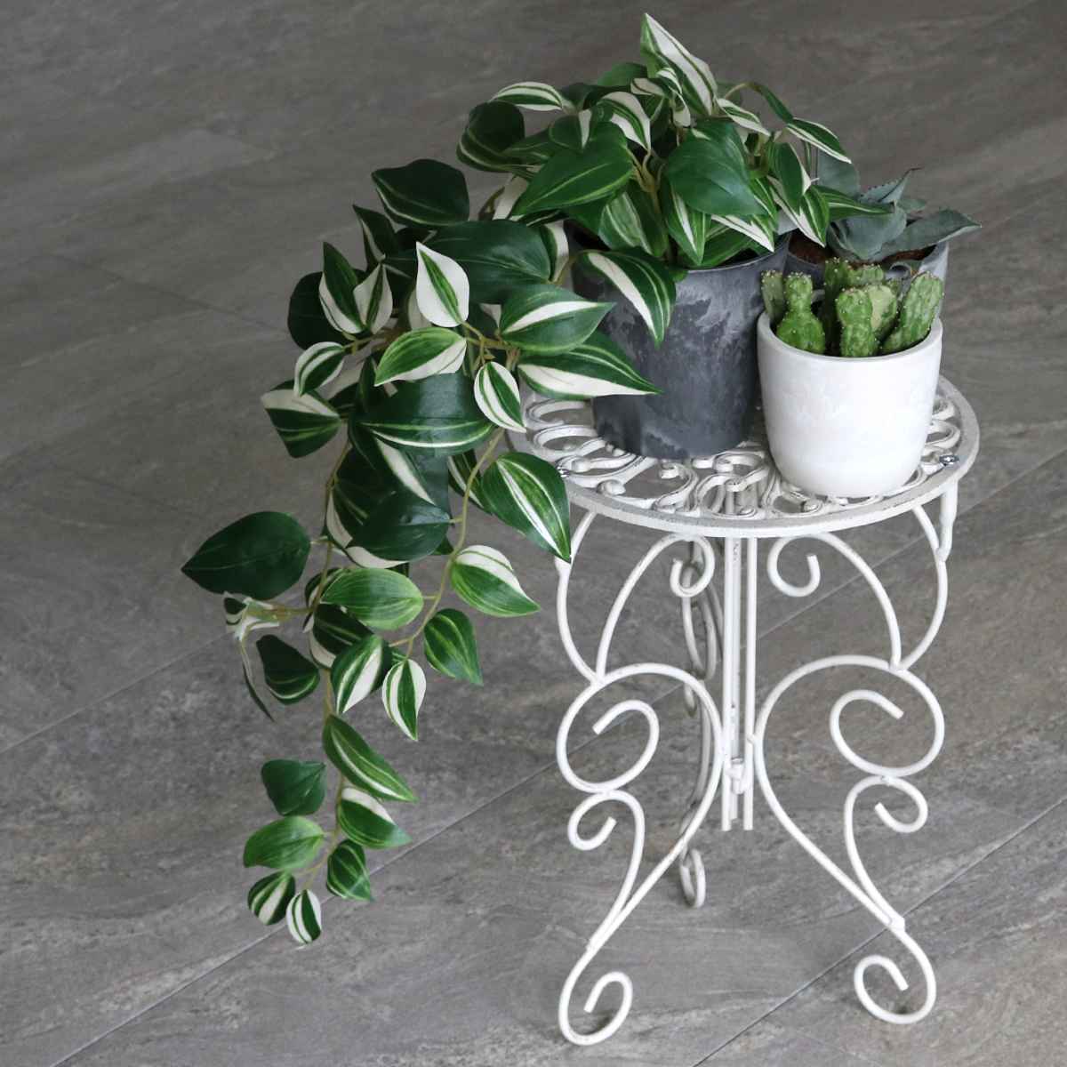 鉢置きとしてはもちろん、雑貨小物を飾ればコンソールのように使用できます。ナチュラルでクラシカルな佇まいが、空間を洗練された印象に整えます。