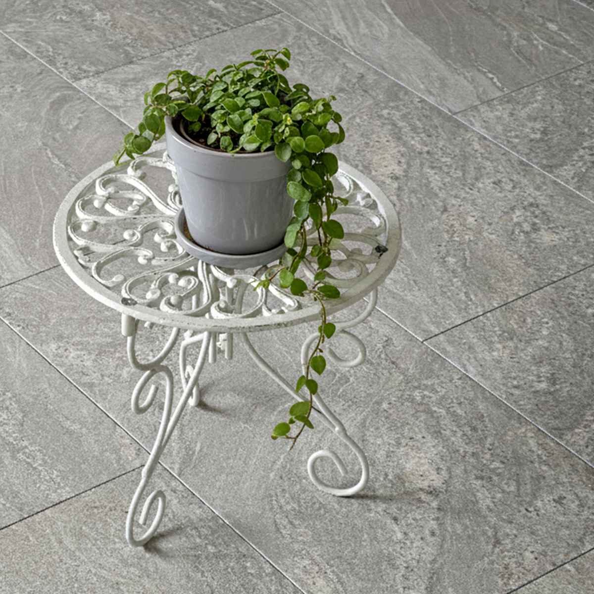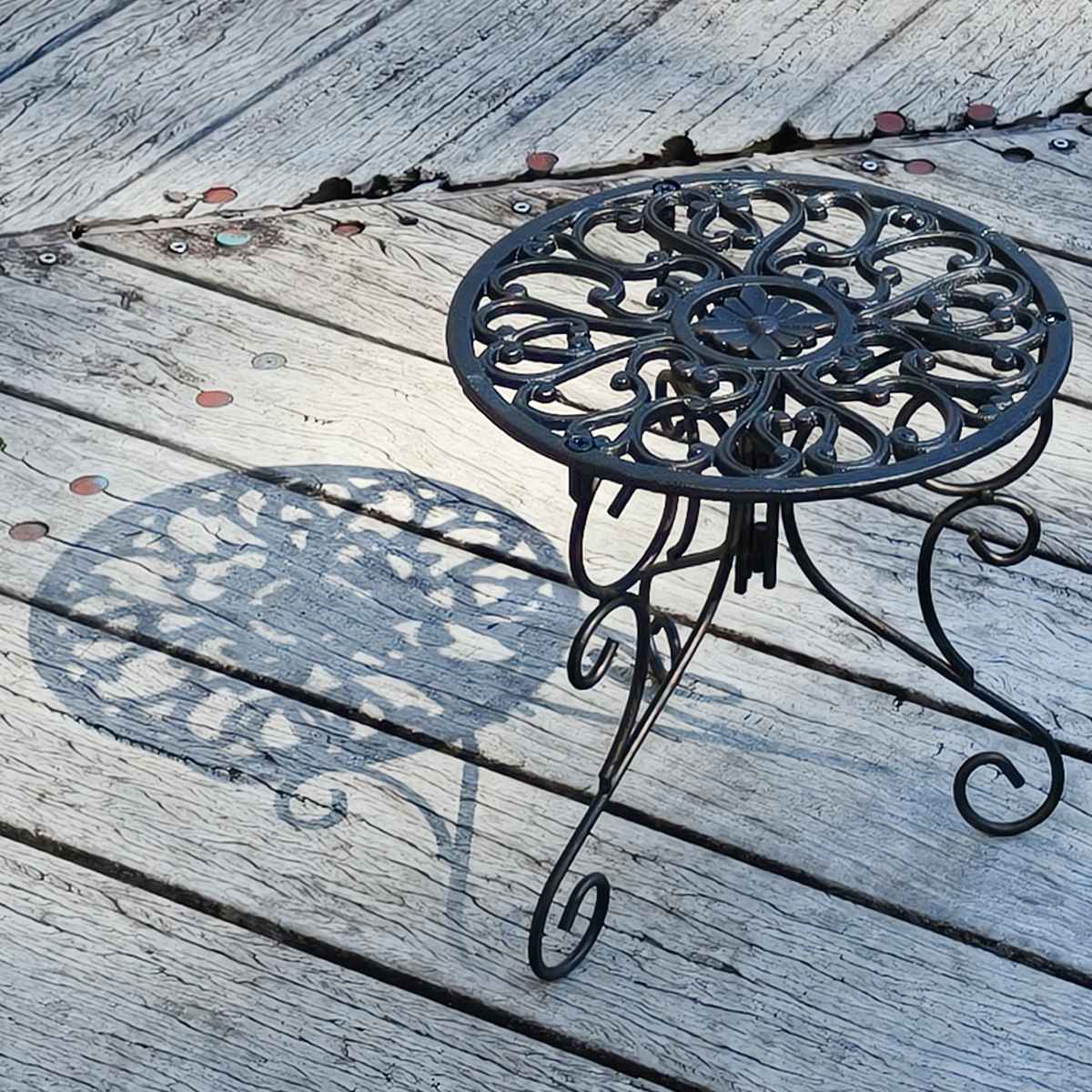 透かし模様が美しいプランタースタンドです。お気に入りの植物を美しく引き立てて、玄関先やお庭に華やかなアクセントを添えます。