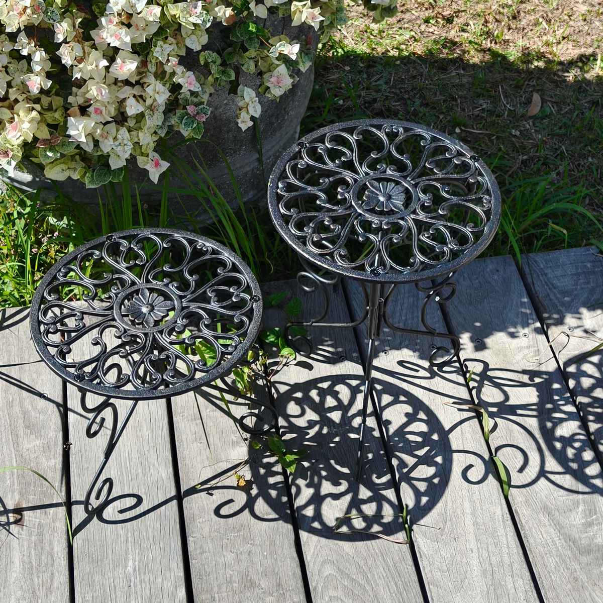 花台 アイアン製プランタースタンド 脚付き ロータイプ deacor デーコル 2個組 ( プランター台 フラワーラック 飾り台 プランターラック フラワー スタンド 室内 飾る 台 脚付 置く 植物 観葉植物 花 園芸 丸型 ) 【ブラック】