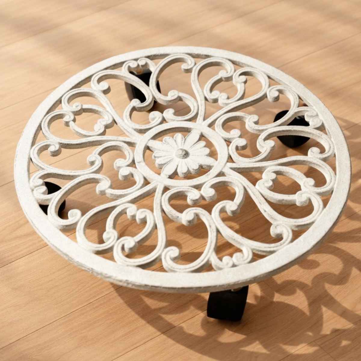 透かし模様が美しいプランタースタンドです。鉢を載せて簡単に移動することができ、毎日の水やりや日当たり調整が楽に行えます。