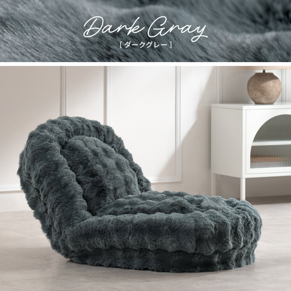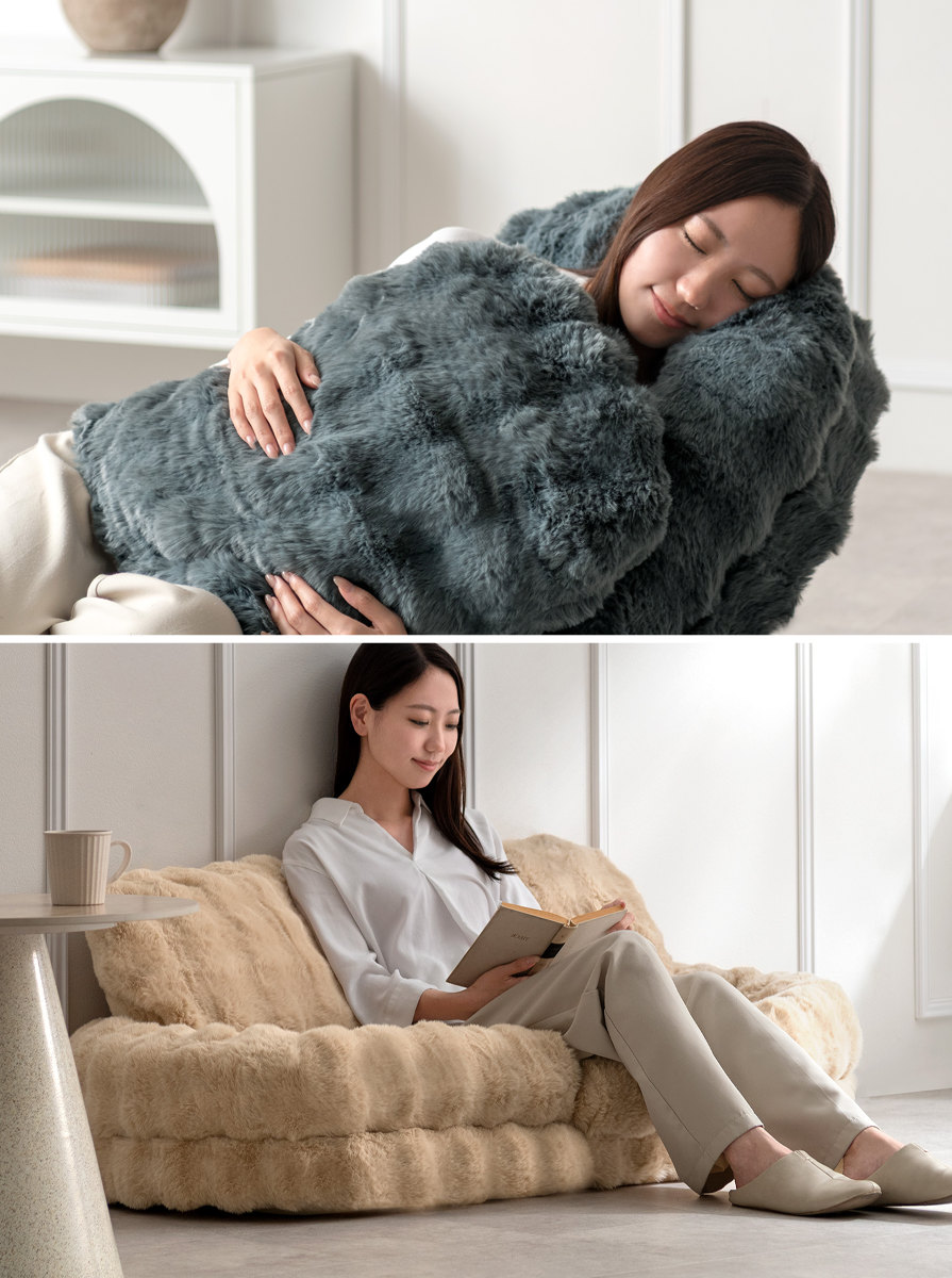 いつまでも触っていたくなるふわとろな張地は、極細繊維の高密度なマイクロファイバー素材です。さらさらの長い毛足がぽこぽこ凹凸のある可愛い仕上がりで、極上の手触りに癒されます。