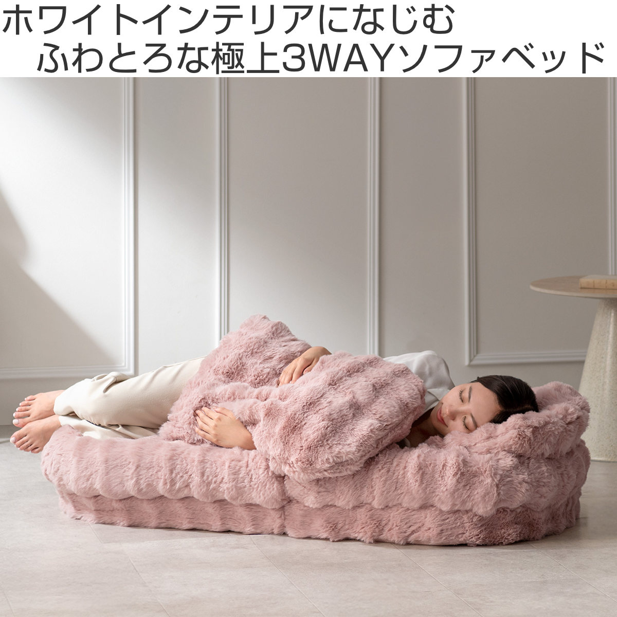 座椅子・ソファ・ベッドの3wayでお使いいただけて一日中過ごせる巣ごもりふわとろソファベッドです。とろけるような肌触りが気持ち良いマイクロファイバー生地と、ふかふかクッションがあなたを癒してくれます。