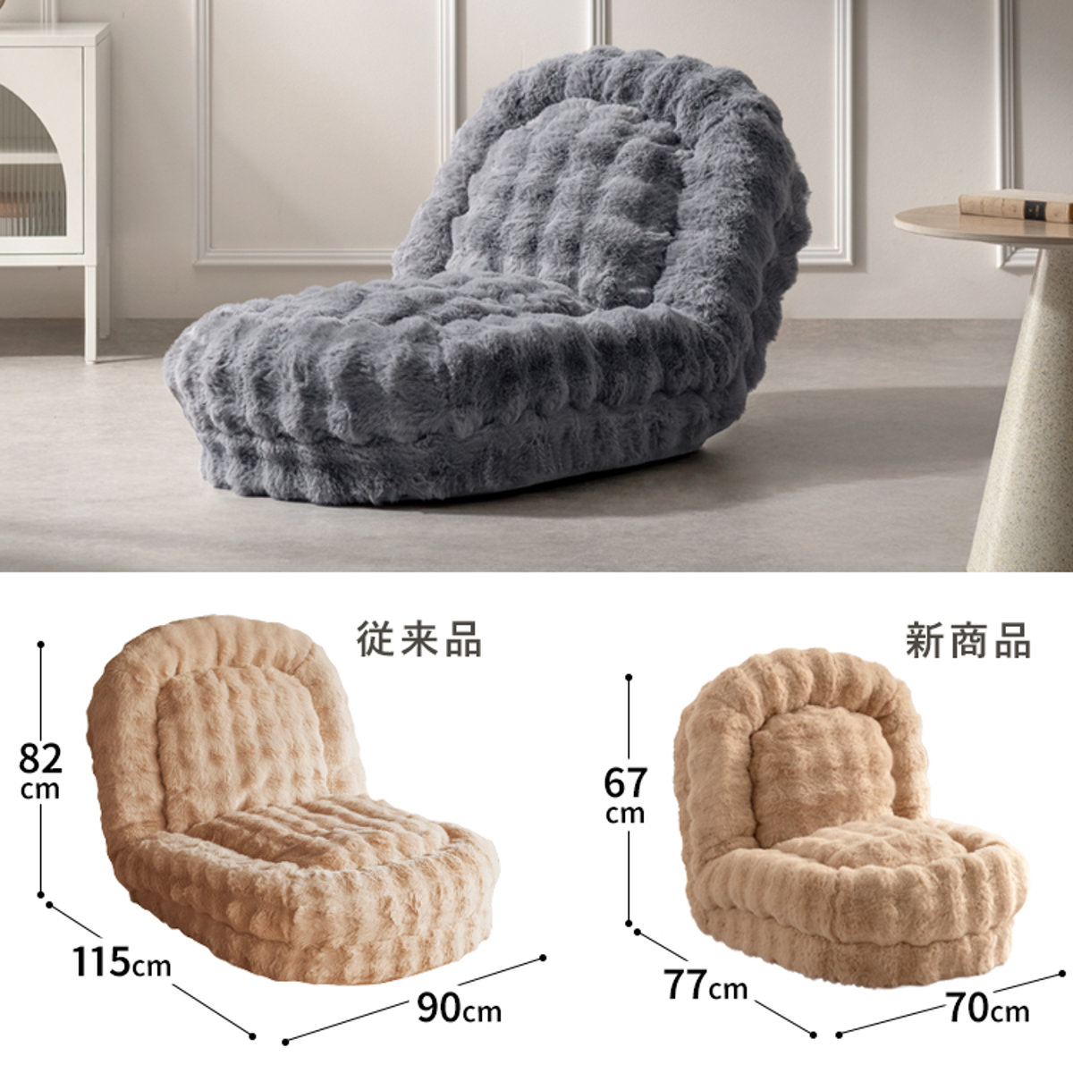 こちらの商品は既存品よりも小さく、限られたスペースにもスッキリ置けます。ひとり暮らしのワンルームやリビングに取り入れやすく、くつろぎスペースを気軽につくれます。