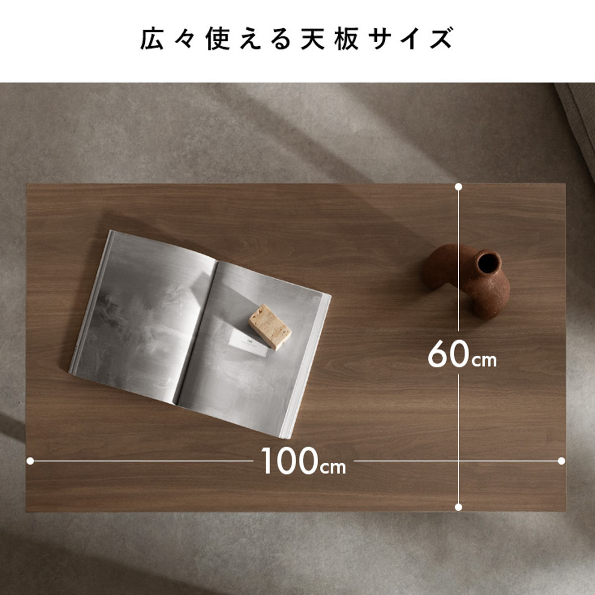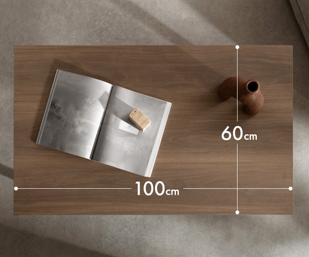 幅100×奥行60cmのゆとりある天板。お食事はもちろん、ノートや本を広げての作業にも快適にお使いいただけます。