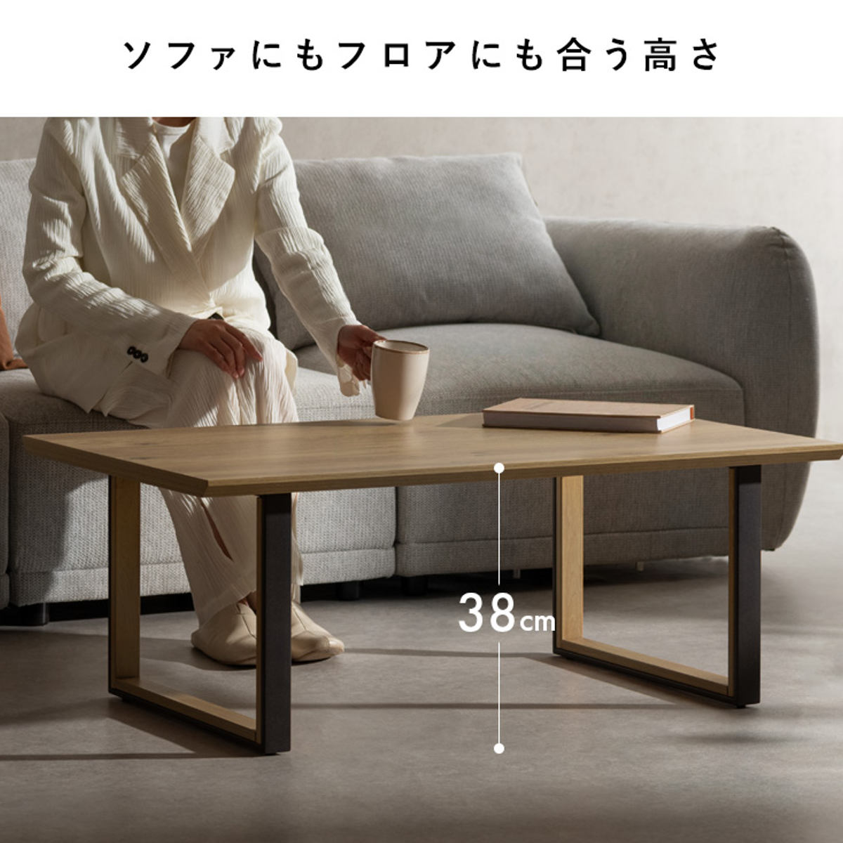 高さ38cmの設計で、フロアスタイル・ソファスタイルのどちらにも対応。どんなリビングにも合わせやすい、使い勝手の良い高さです。