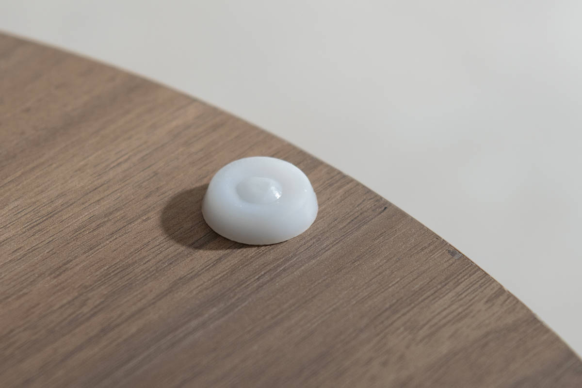 テーブル脚・スツール脚の先端には樹脂キャップを装備。床へのキズを防ぎ、安心してお使いいただけます。
