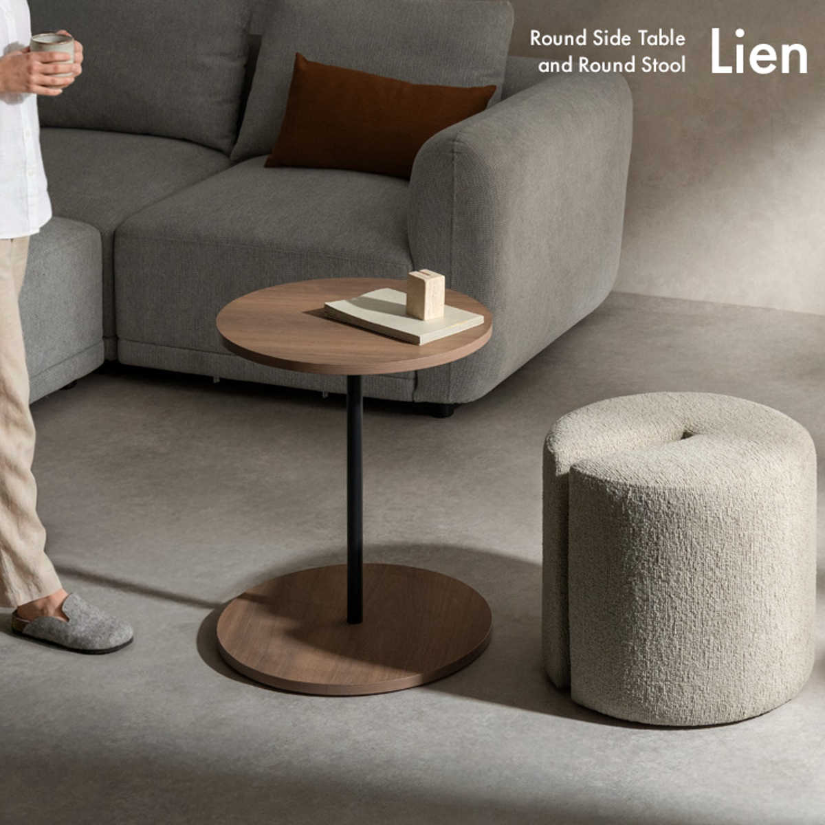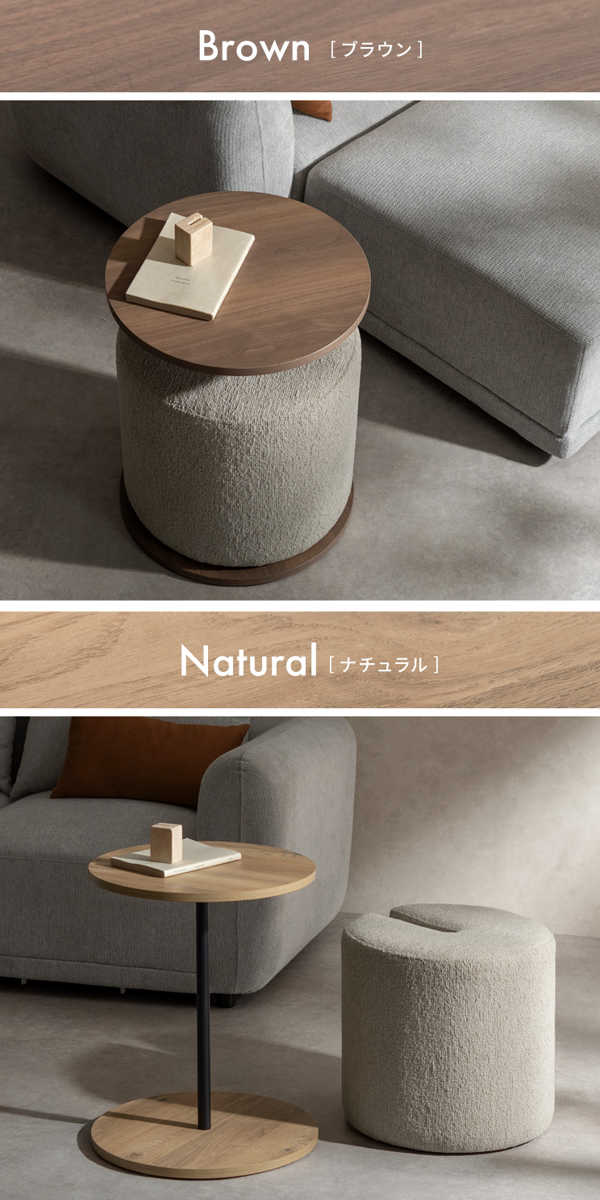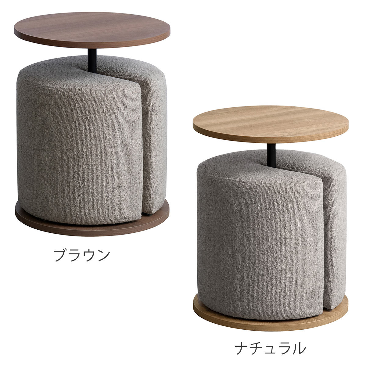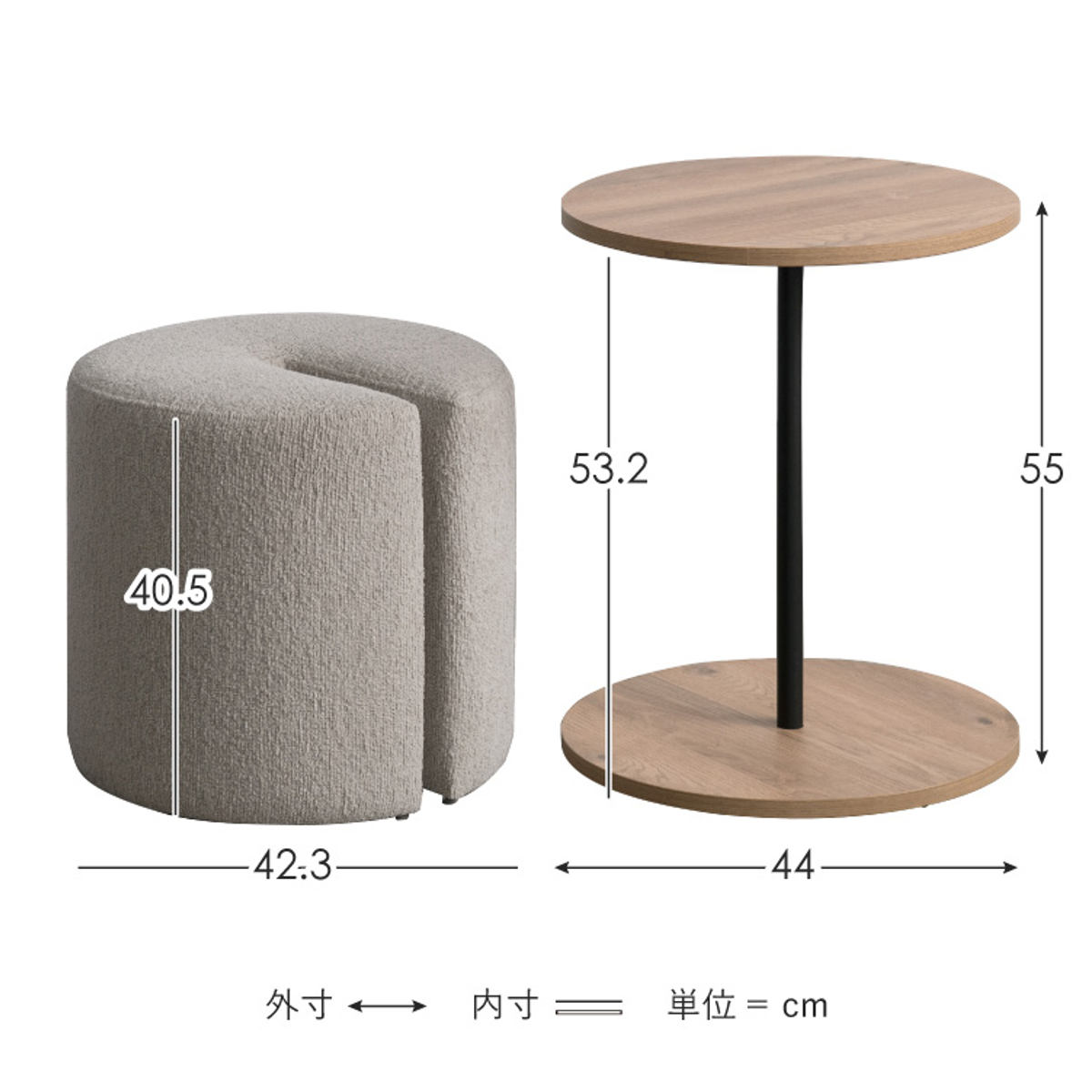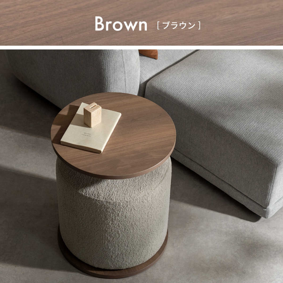 サイドテーブル&スツール 高さ55cm Lien Signature Studio ( サイドテーブル スツール ミニテーブル 直径44cm 水 キズ 強い メラミン天板 ブークレ生地 丸テーブル ソファサイド ベッドサイド 腰掛け チェア ウレタン ) 【ブラウン】