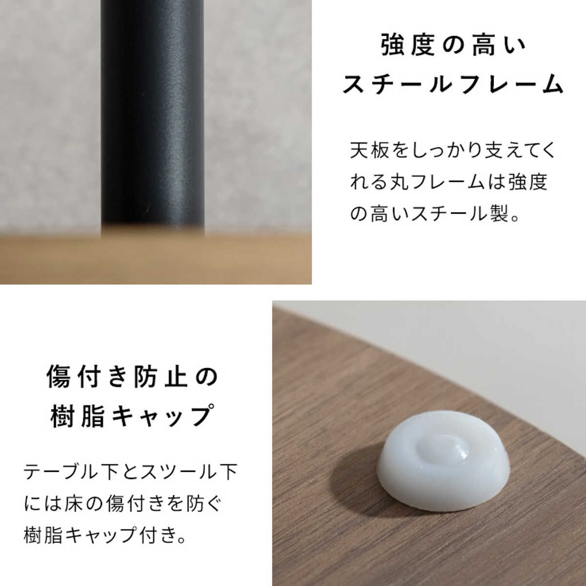 | 材質 | テーブル MDF(メラミン貼り)、スチール(粉体塗装) スツール 木、ウレタン、張地:ポリエステル |