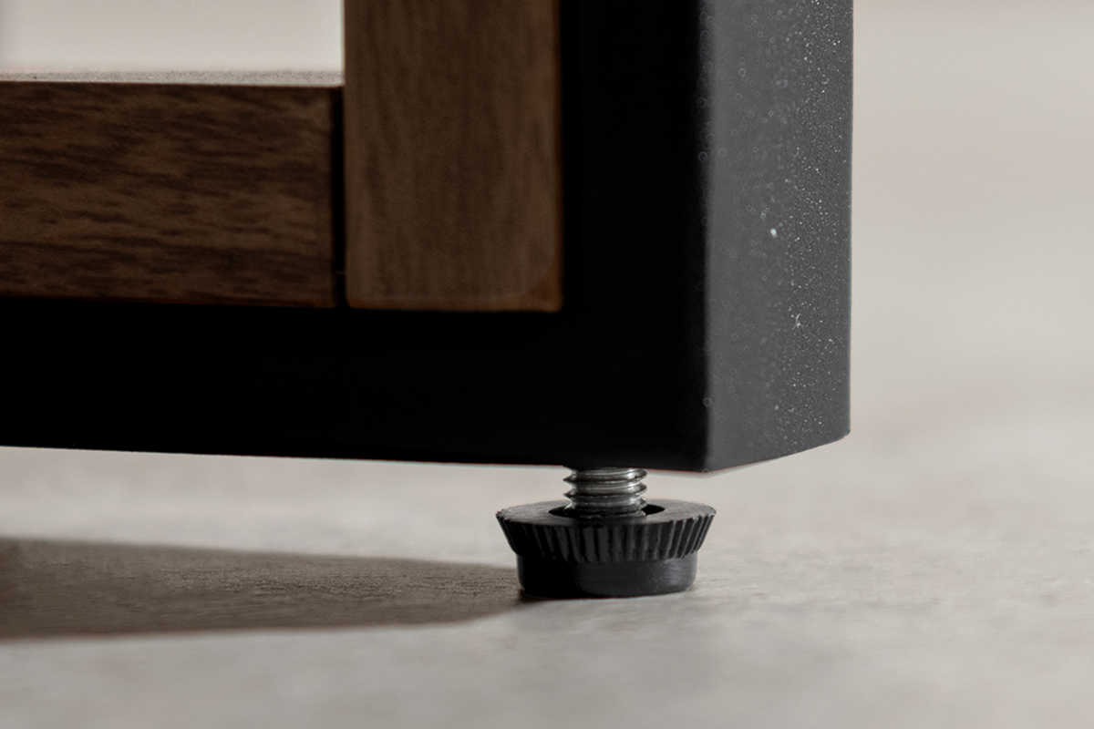 脚先にはアジャスターを備え、床のわずかな凹凸にも対応。ガタつきを抑え、安定した設置が可能です。