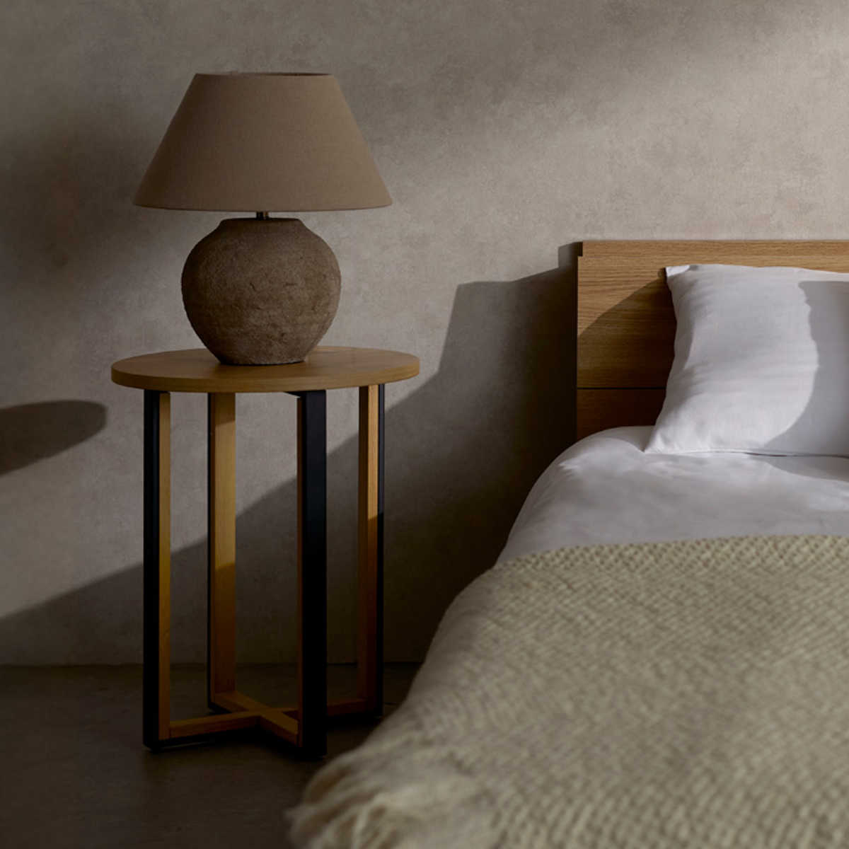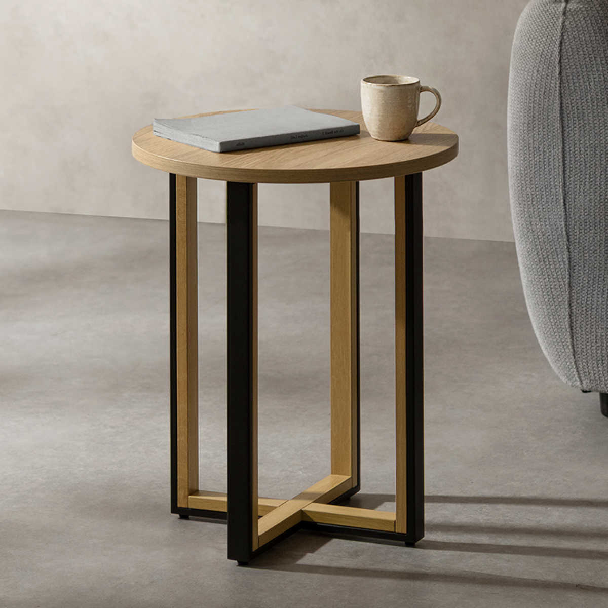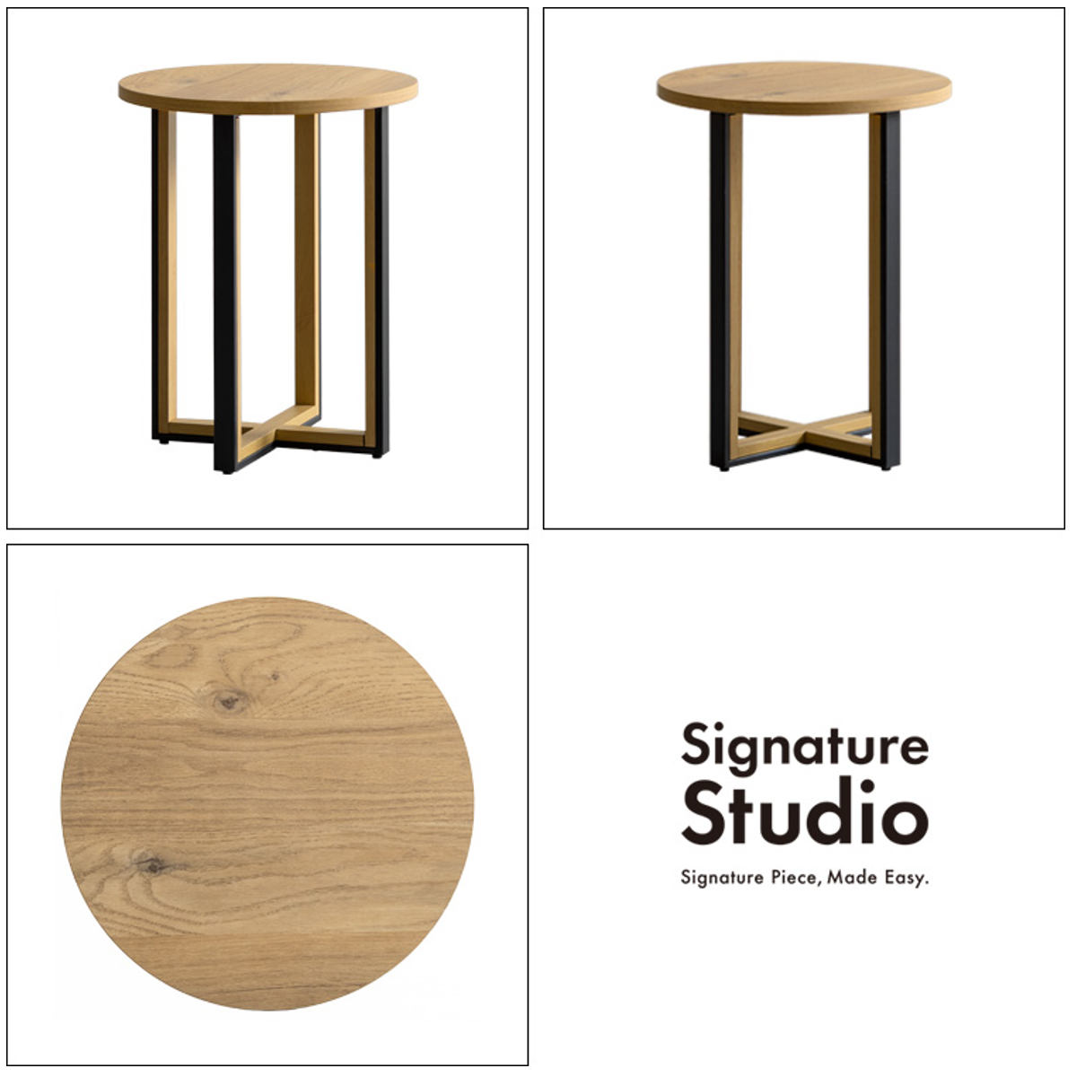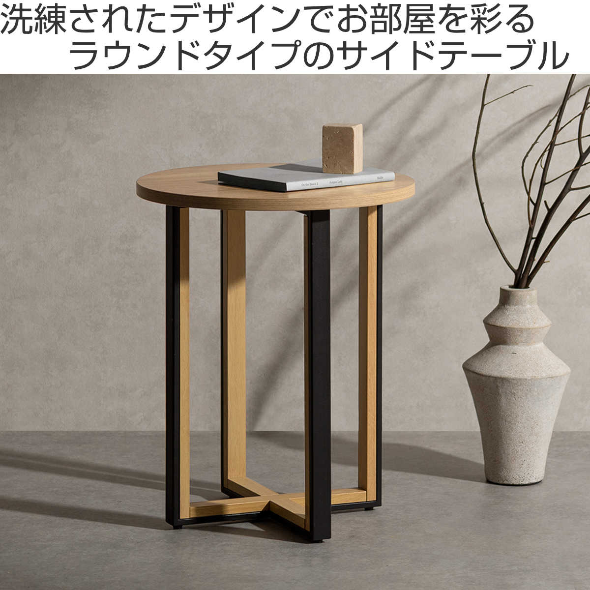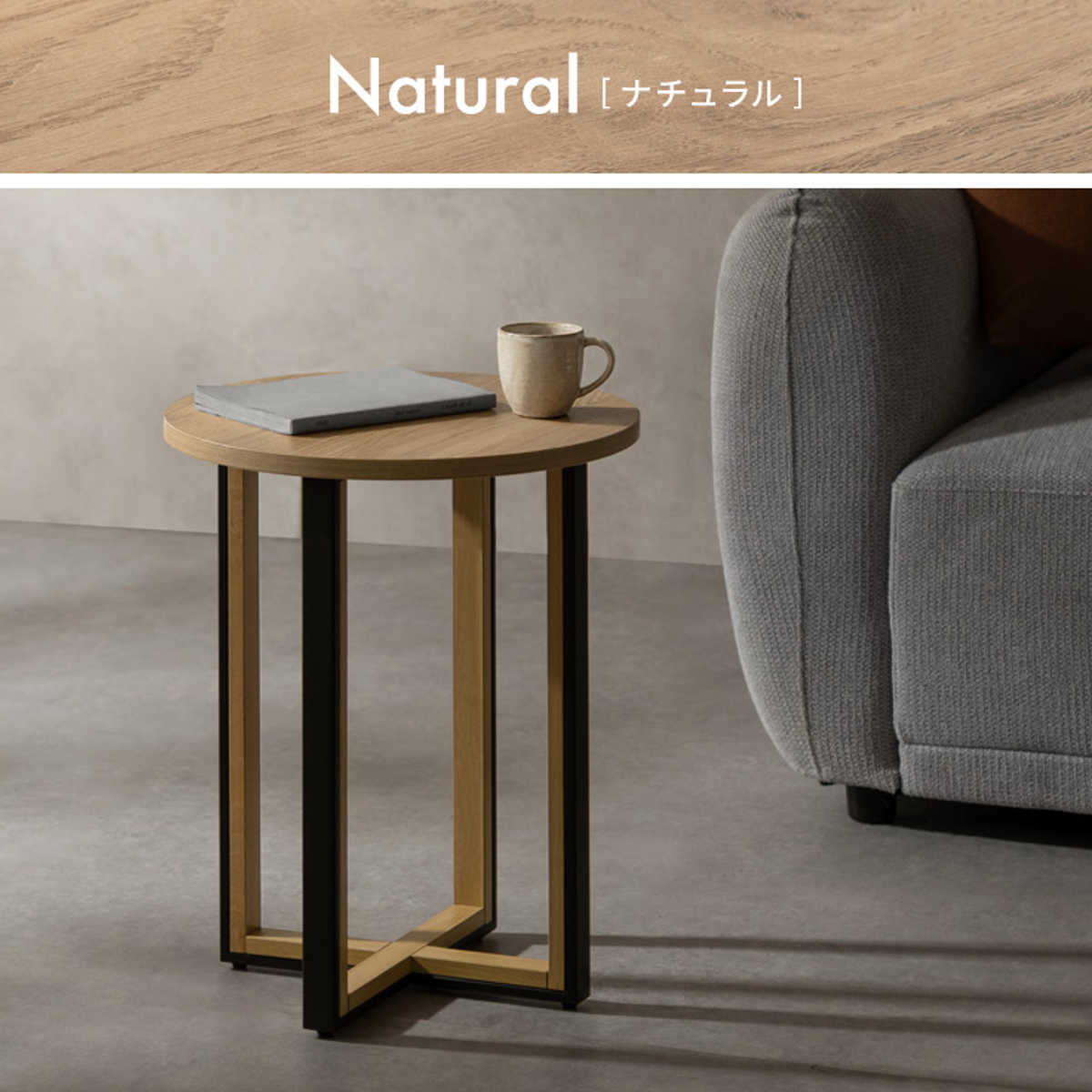 木目調の天板とツートンカラーの脚部を組み合わせた、シンプルモダンなサイドテーブル。すっきりとしたデザインで、モダン・ナチュラル・ホテルライクな空間まで幅広くなじみます。