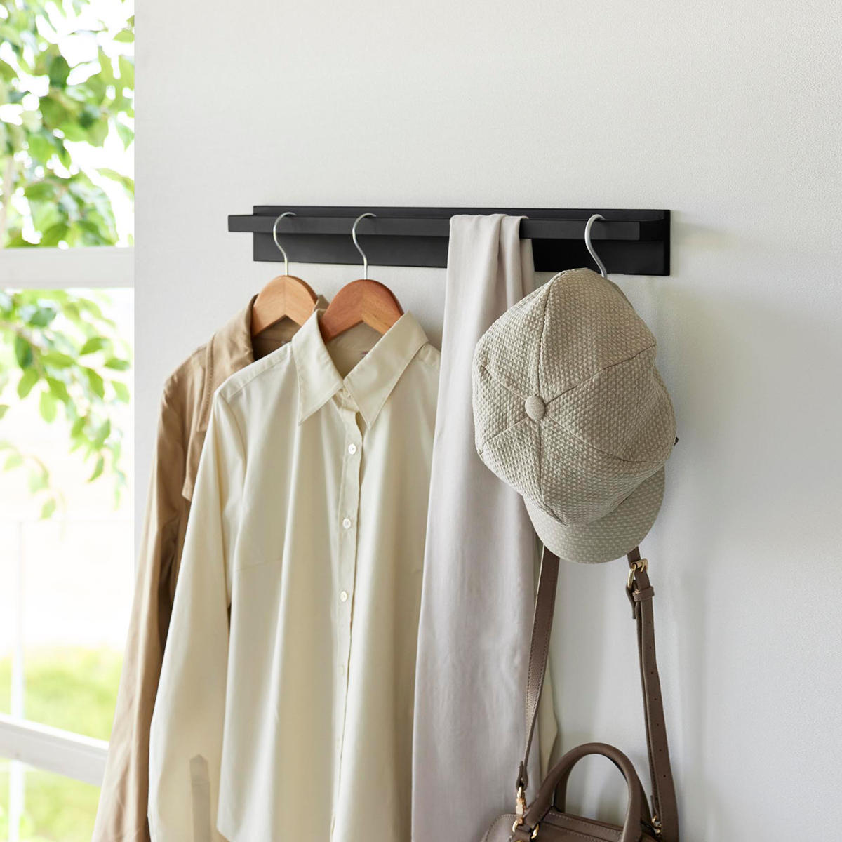 山崎実業 tower 壁付けハンガーバー タワー ( 4903208106818 タワーシリーズ 壁付け ハンガーバー 洋服掛け ウォールハンガー 壁 壁面収納 壁面設置 石膏ボード ピン 壁面 コートハンガー 壁掛けハンガー ) 【ブラック】