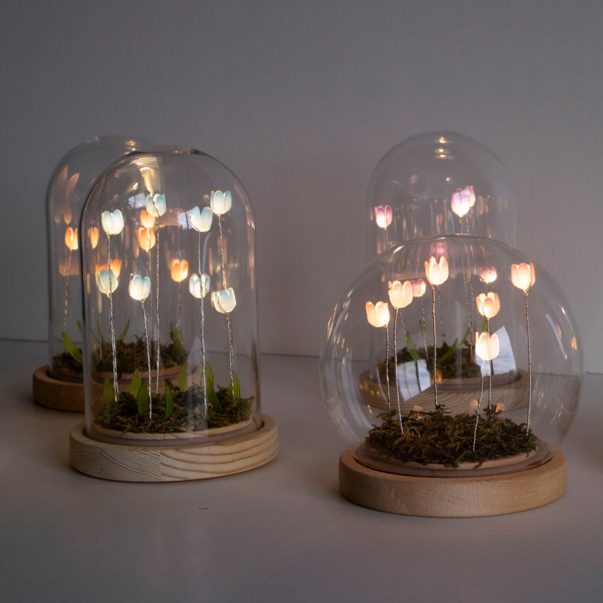 ガラスドームに咲く癒しのチューリップLEDランプ