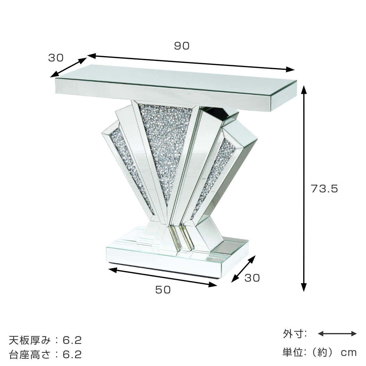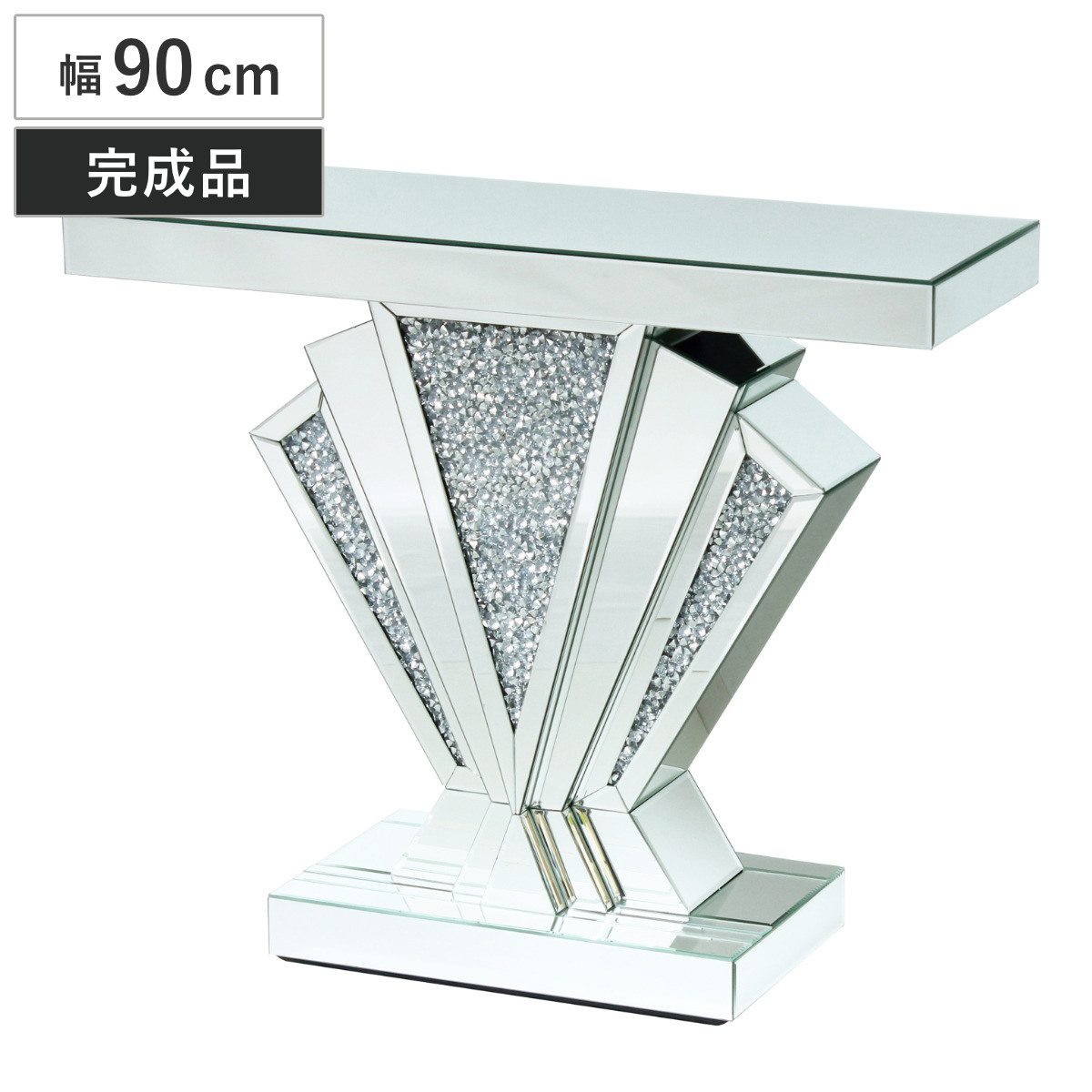 コンソールテーブル 幅90cm ダイヤ 完成品 ドレッサー ( スリム テーブル 奥行30cm 玄関 棚 玄関収納 小物置き 飾り棚 クリスタル調 天板 ディスプレイ台 ミニテーブル 廊下 リビング ディスプレイ 台 コンパクト ラグジュアリー )