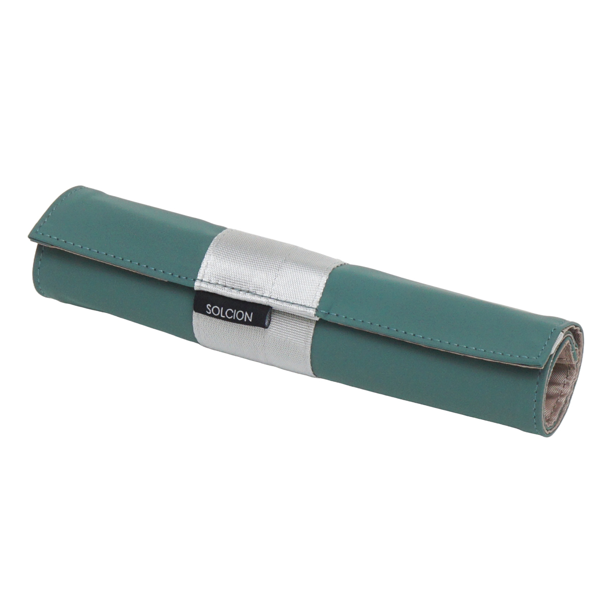 ペンケース くるんと 自立 オシャレ シンプル ( ペン立て 筆箱 ループ付き 収納 大容量 仕切り付き 立てる 縦 スリム スタンド 持ち運び コンパクト 文具 オフィス 学校 布製 たたみやすい ) 【スモーキーグリーン】
